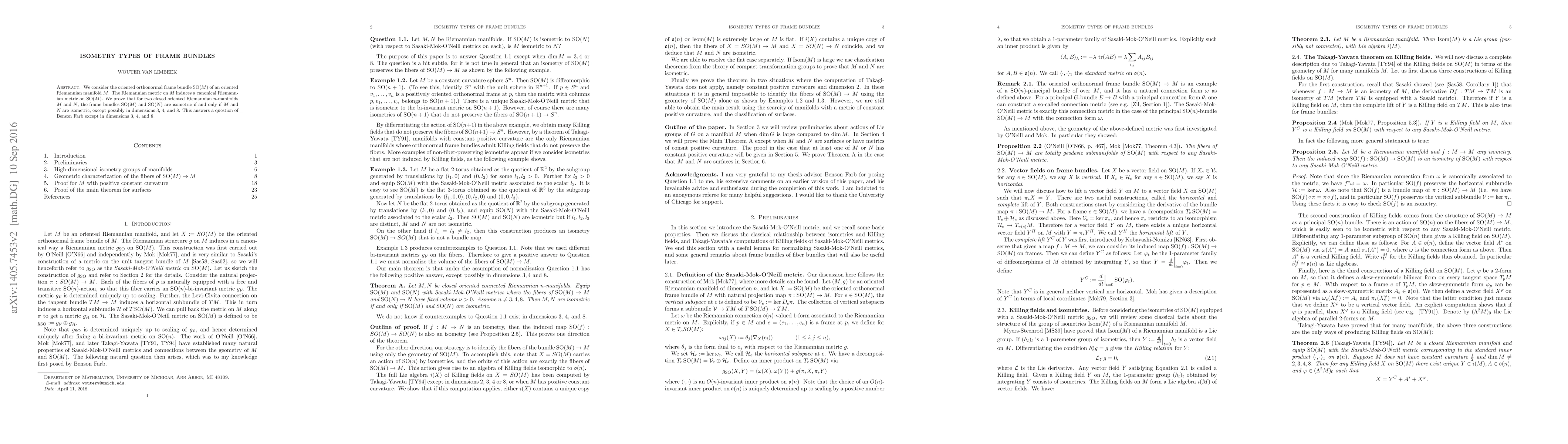 We consider the orthonormal frame bundle F(M) of a Riemannian manifold M. A construction of Sasaki defines a canonical Riemannian metric on F(M). We prove that for two closed Riemannian n-manifolds M and N, the frame bundles F(M) and F(N) are isometric if and only if M and N are isometric, except possibly in dimensions 3, 4, and 8. This answers a question of Benson Farb except in dimensions 3, 4, and 8.
