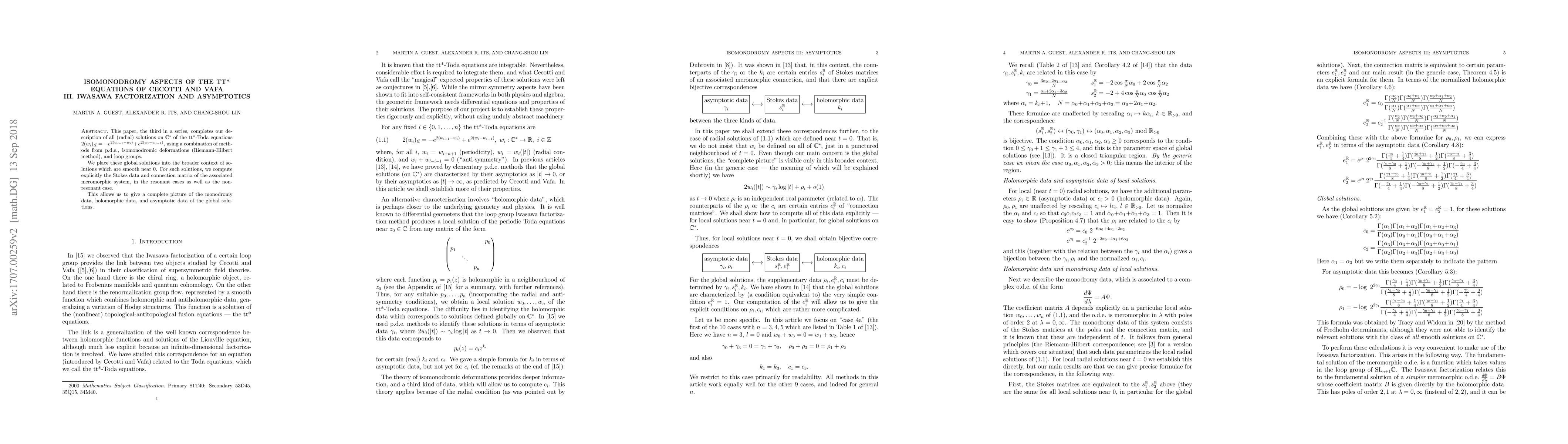 This paper, the third in a series, completes our description of all (radial) solutions on C* of the tt*-Toda equations, using a combination of methods from p.d.e., isomonodromic deformations (Riemann-Hilbert method), and loop groups. We place these global solutions into the broader context of solutions which are smooth near 0. For such solutions, we compute explicitly the Stokes data and connection matrix of the associated meromorphic system, in the resonant cases as well as the non-resonant case. This allows us to give a complete picture of the monodromy data of the global solutions.