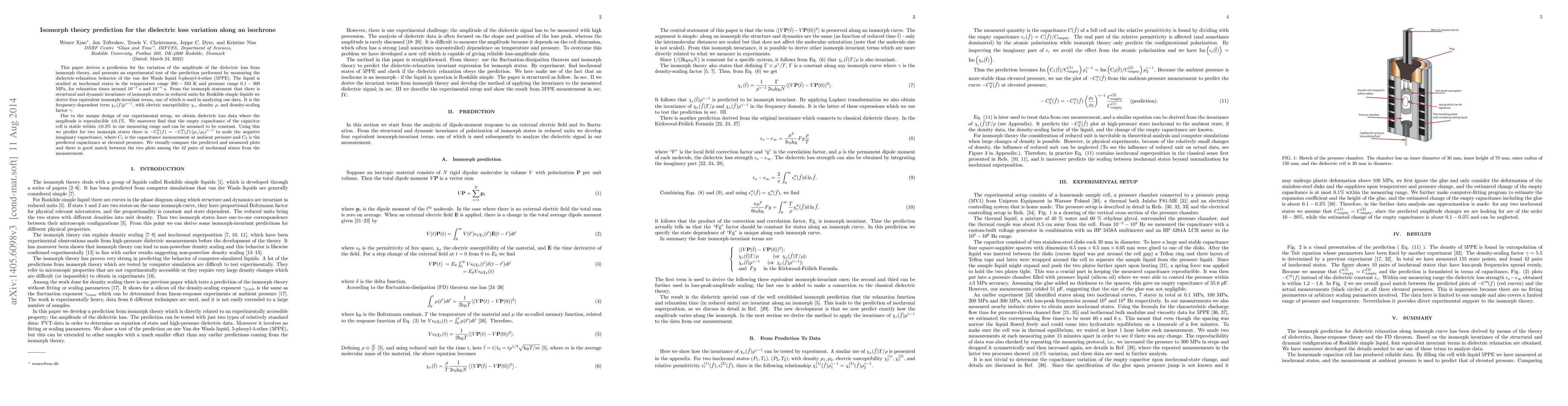Researchers developed a prediction for dielectric loss variation along an isochrone using isomorph theory, tested it with the van der Waals liquid 5-phenyl-4-ether, and found good match between predicted and measured plots.