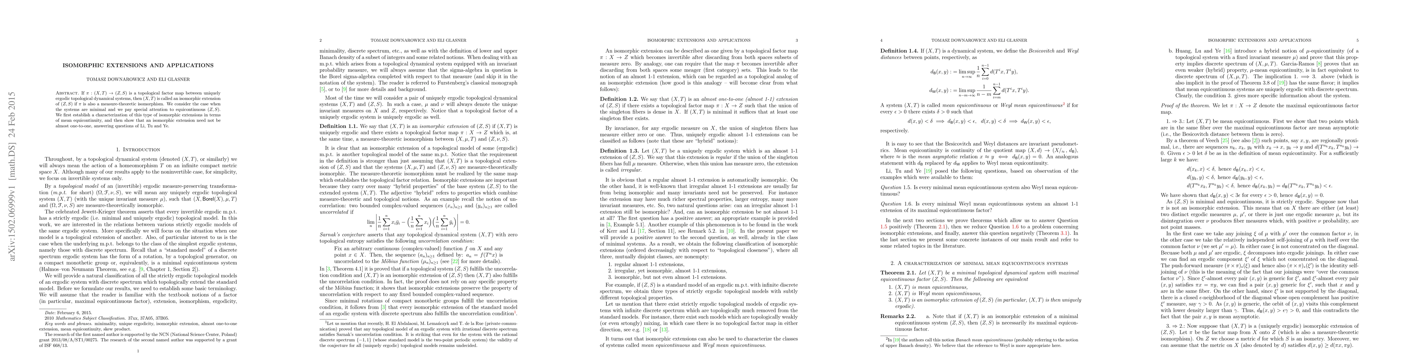 This paper characterizes isomorphic extensions of uniquely ergodic minimal topological dynamical systems, particularly focusing on equicontinuous systems. It demonstrates that such extensions need not be almost one-to-one, resolving a question posed by Li, Tu, and Ye.