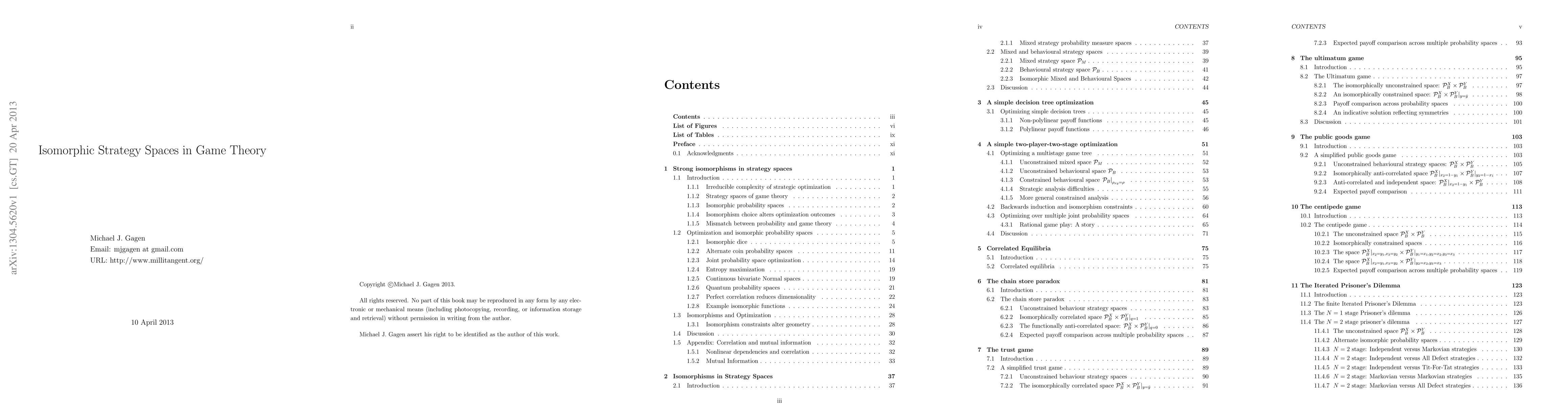 This book summarizes ongoing research introducing probability space isomorphic mappings into the strategy spaces of game theory. This approach is motivated by discrepancies between probability theory and game theory when applied to the same strategic situation. In particular, probability theory and game theory can disagree on calculated values of the Fisher information, the log likelihood function, entropy gradients, the rank and Jacobian of variable transforms, and even the dimensionality and volume of the underlying probability parameter spaces. These differences arise as probability theory employs structure preserving isomorphic mappings when constructing strategy spaces to analyze games. In contrast, game theory uses weaker mappings which change some of the properties of the underlying probability distributions within the mixed strategy space. Here, we explore how using strong isomorphic mappings to define game strategy spaces can alter rational outcomes in simple games . Specific example games considered are the chain store paradox, the trust game, the ultimatum game, the public goods game, the centipede game, and the iterated prisoner's dilemma. In general, our approach provides rational outcomes which are consistent with observed human play and might thereby resolve some of the paradoxes of game theory.