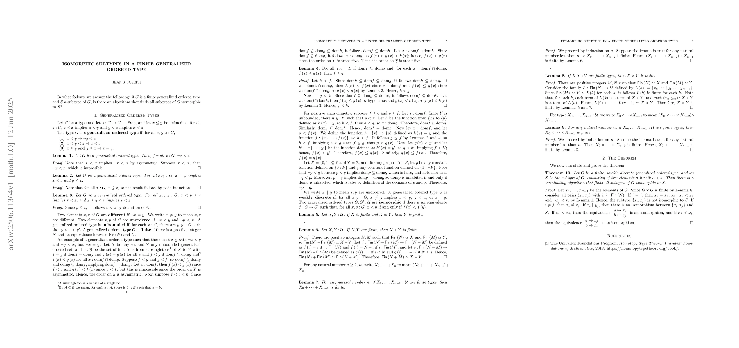 We give sufficient conditions to find all subtypes isomorphic to a subtype in a finite generalized ordered type.