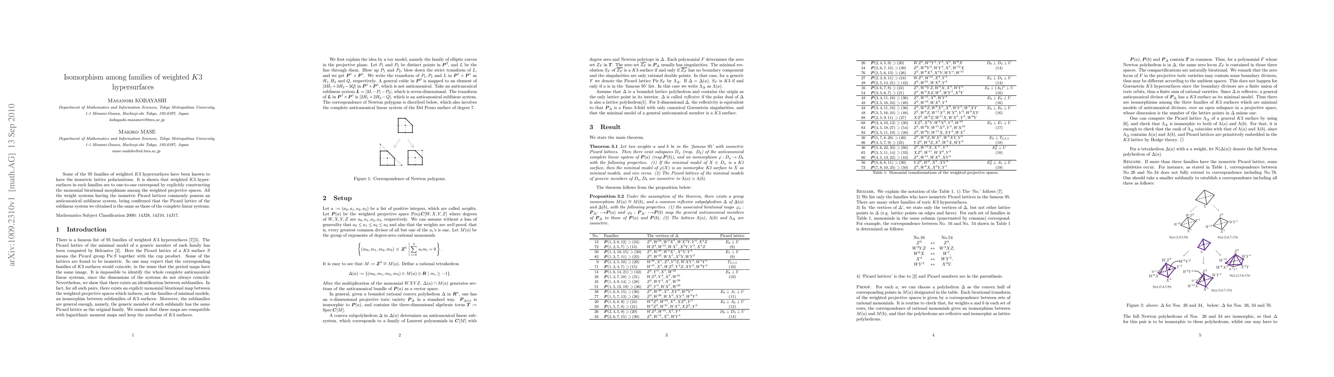 Some of the 95 families of weighted K3 hypersurfaces have been known to have the isometric lattice polarizations. It is shown that weighted K3 hypersurfaces in such families are to one-to-one correspond by explicitly constructing the monomial birational morphisms among the weighted projective spaces. All the weight systems having the isometric Picard lattices commonly possess an anticanonical sublinear system, being confirmed that the Picard lattice of the sublinear system we obtained is the same as those of the complete linear systems.