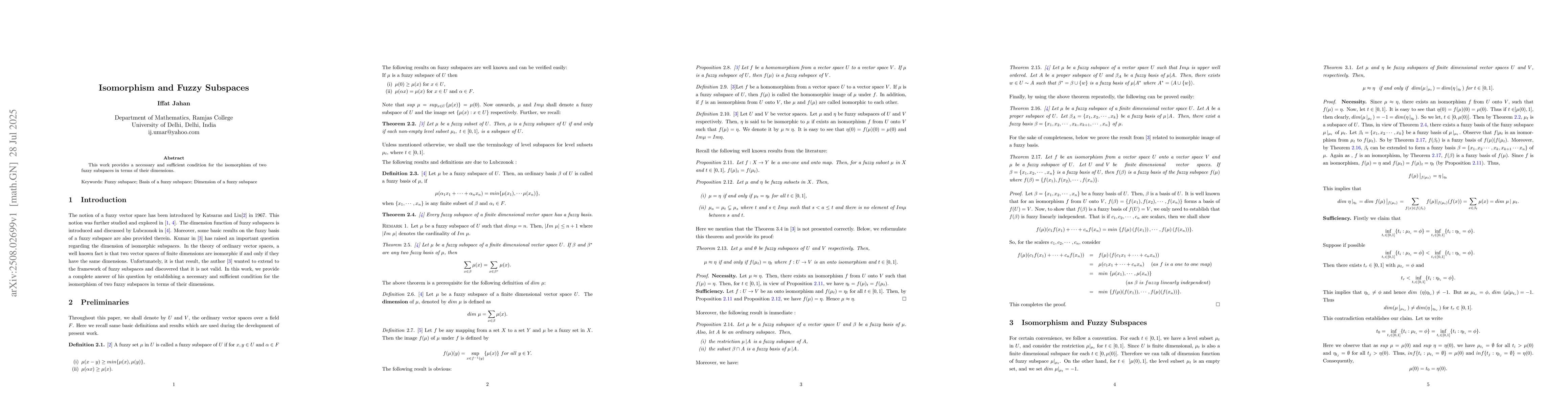 This work provides a necessary and sufficient condition for the isomorphism of two fuzzy subspaces in terms of their dimensions.