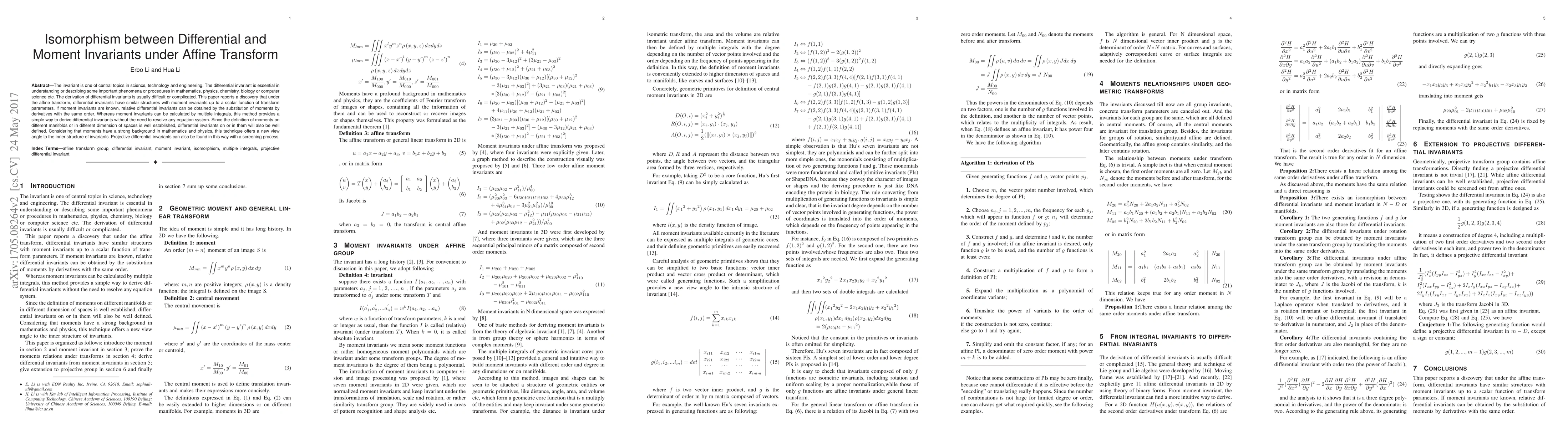 This paper reveals an isomorphism between differential and moment invariants under affine transforms, showing that differential invariants can be derived by substituting moments with derivatives, simplifying their computation. This method leverages the established definition of moments to define differential invariants without solving complex equations.