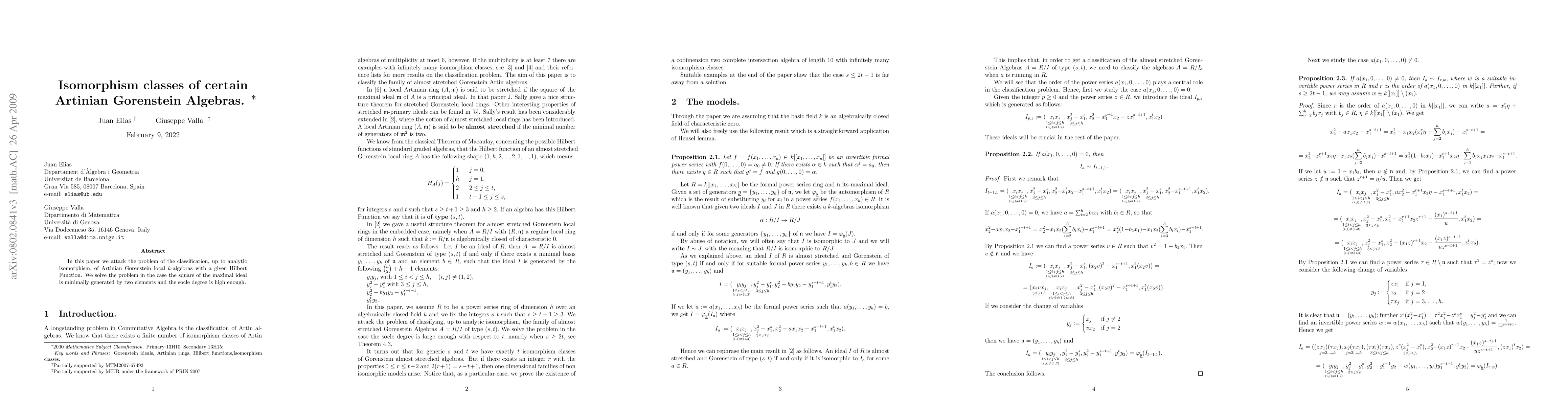 This research classifies Artinian Gorenstein algebras, specifically almost stretched complete intersections, with a given Hilbert function, when the base ring is a power series ring with any number of variables, up to analytic isomorphism.