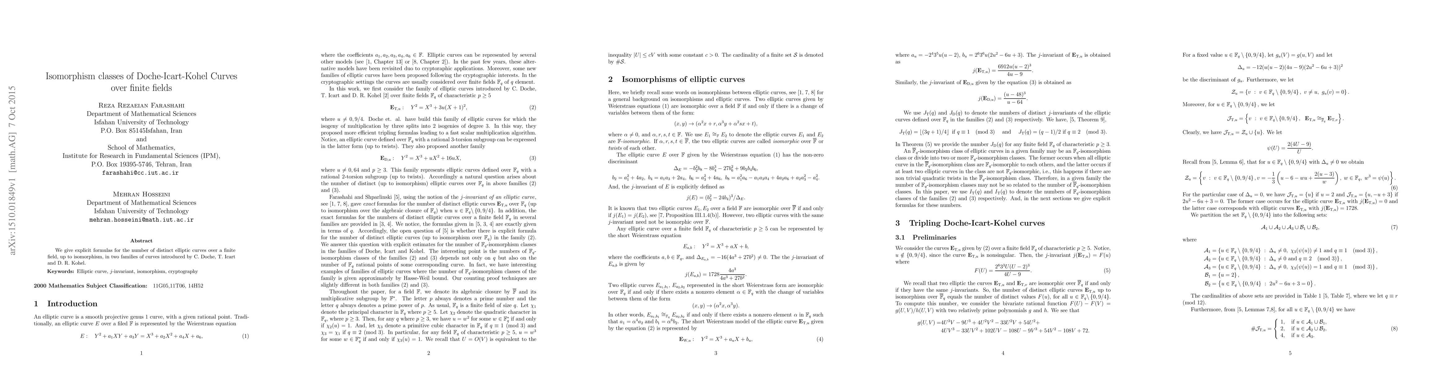 This paper provides explicit formulas for determining the number of distinct elliptic curves, up to isomorphism, over finite fields within two families of curves introduced by Doche, Icart, and Kohel. The results offer valuable insights into the structure and classification of these curves.
