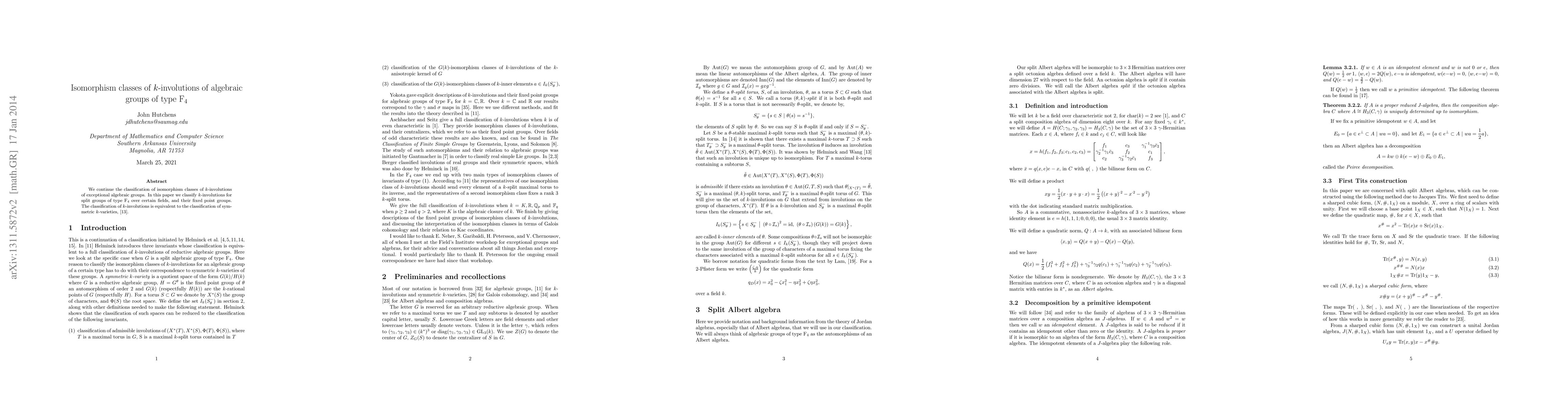 This paper classifies the isomorphism classes of $k$-involutions in split algebraic groups of type $F_4$ over specific fields, and identifies their associated fixed point groups. The study is parallel to classifying symmetric $k$-varieties.