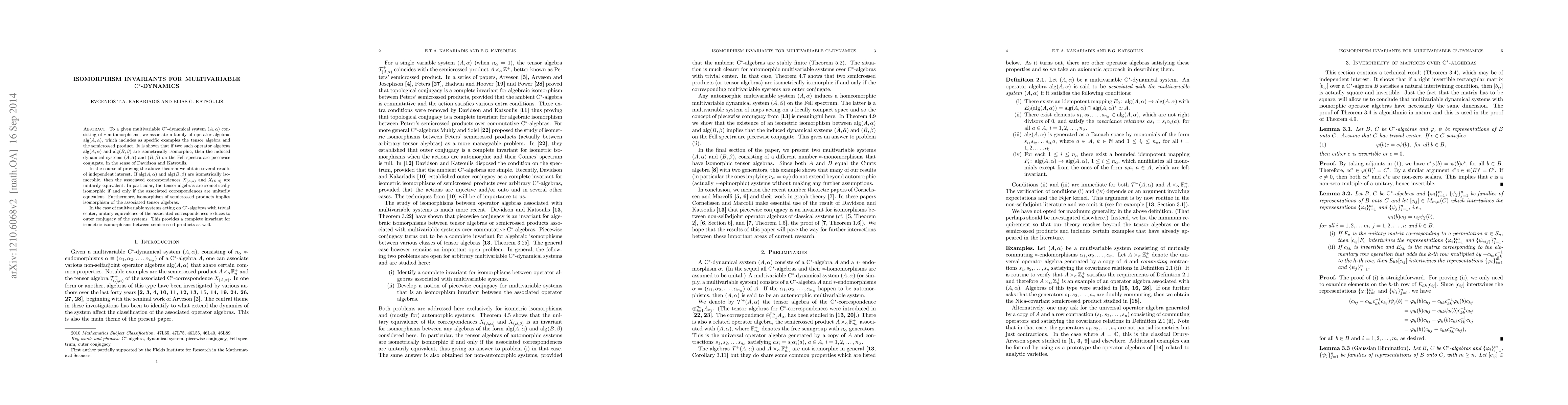 To a given multivariable C*-dynamical system $(A, \al)$ consisting of *-automorphisms, we associate a family of operator algebras $\alg(A, \al)$, which includes as specific examples the tensor algebra and the semicrossed product. It is shown that if two such operator algebras $\alg(A, \al)$ and $\alg(B, \be)$ are isometrically isomorphic, then the induced dynamical systems $(\hat{A}, \hat{\al})$ and $(\hat{B}, \hat{\be})$ on the Fell spectra are piecewise conjugate, in the sense of Davidson and Katsoulis. In the course of proving the above theorem we obtain several results of independent interest. If $\alg(A, \al)$ and $\alg(B, \be)$ are isometrically isomorphic, then the associated correspondences $X_{(A, \al)}$ and $X_{(B, \be)}$ are unitarily equivalent. In particular, the tensor algebras are isometrically isomorphic if and only if the associated correspondences are unitarily equivalent. Furthermore, isomorphism of semicrossed products implies isomorphism of the associated tensor algebras. In the case of multivariable systems acting on C*-algebras with trivial center, unitary equivalence of the associated correspondences reduces to outer conjugacy of the systems. This provides a complete invariant for isometric isomorphisms between semicrossed products as well.