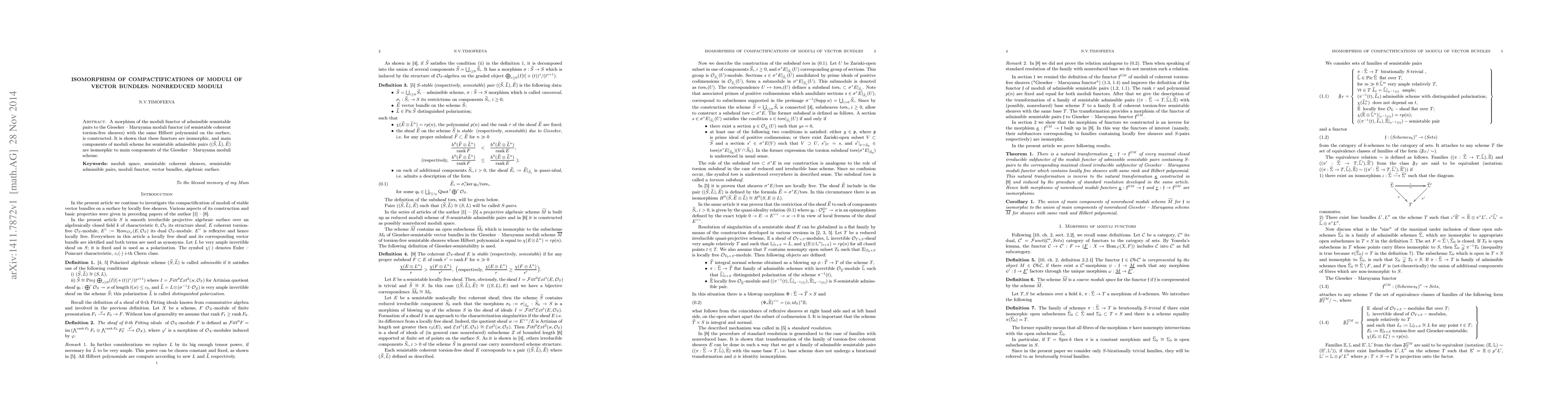 A morphism of the moduli functor of admissible semistable pairs to the Gieseker -- Maruyama moduli functor (of semistable coherent torsion-free sheaves) with the same Hilbert polynomial on the surface, is constructed. It is shown that these functors are isomorphic, and main components of moduli scheme for semistable admissible pairs are isomorphic to main components of the Gieseker -- Maruyama moduli scheme