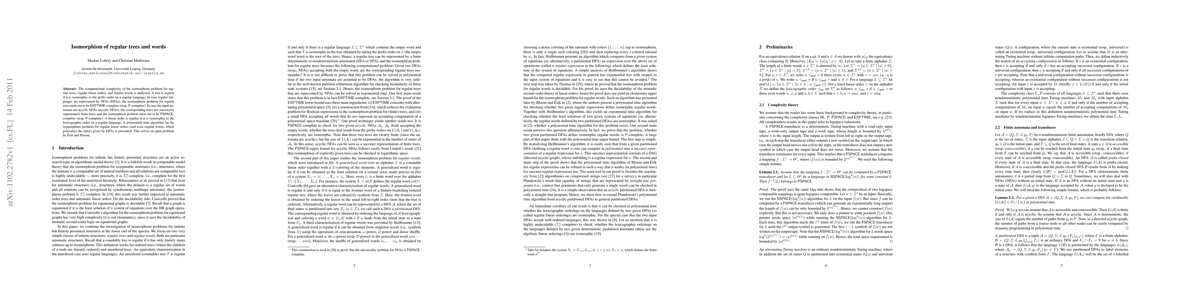 The research analyzes the computational complexity of the isomorphism problem for regular trees, regular linear orders, and regular words, using NFAs and DFAs as representations. It establishes complexity classes such as EXPTIME-complete, PSPACE-complete, and P-complete for different cases.