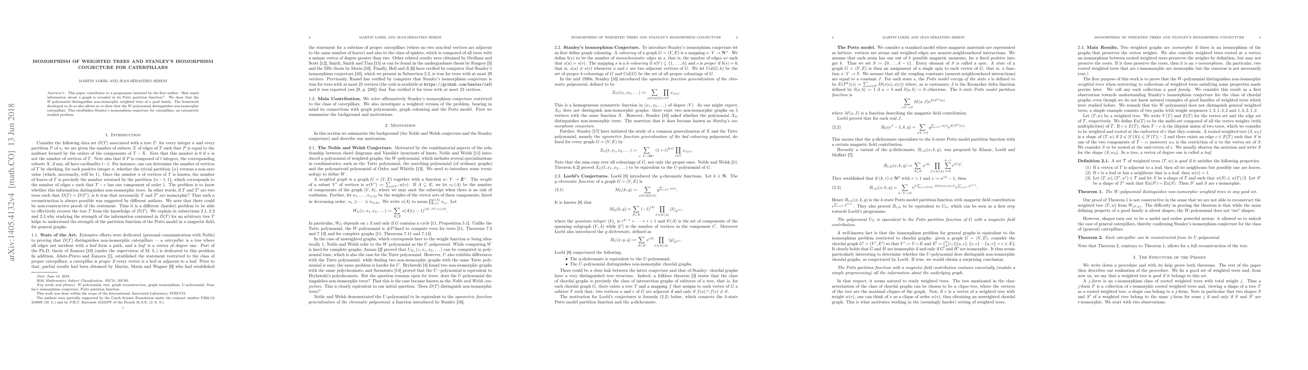 Researchers prove Stanley's isomorphism conjecture for caterpillars, showing that a specific polynomial distinguishes between non-isomorphic caterpillars, resolving an extensively studied problem in graph theory.