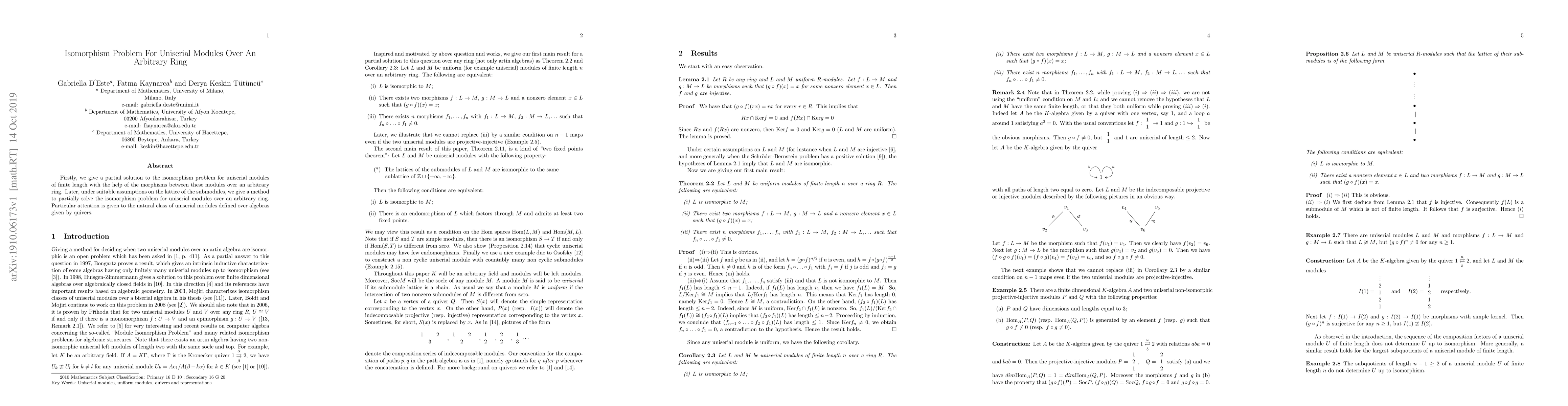 This paper provides a partial solution to the isomorphism problem for uniserial modules of finite length using morphisms between these modules over an arbitrary ring. It also introduces a method under specific lattice conditions to address the isomorphism problem for uniserial modules over arbitrary rings, with a focus on uniserial modules defined over quiver algebras.