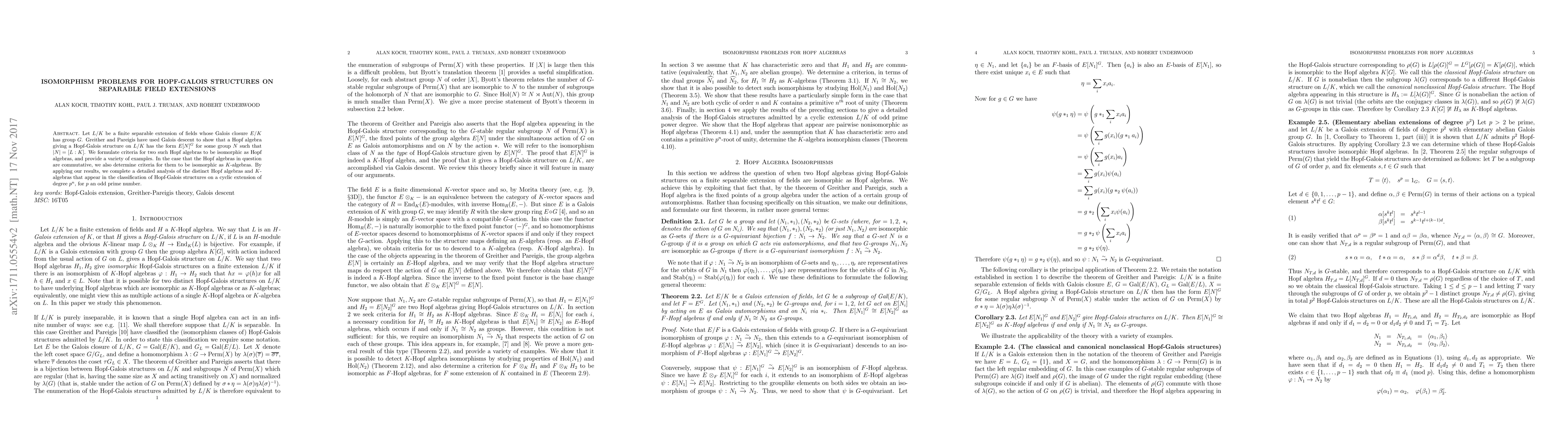 Let $ L/K $ be a finite separable extension of fields whose Galois closure $ E/K $ has group $ G $. Greither and Pareigis have used Galois descent to show that a Hopf algebra giving a Hopf-Galois structure on $ L/K $ has the form $ E[N]^{G} $ for some group $ N $ such that $ |N|=[L:K] $. We formulate criteria for two such Hopf algebras to be isomorphic as Hopf algebras, and provide a variety of examples. In the case that the Hopf algebras in question are commutative, we also determine criteria for them to be isomorphic as $ K $-algebras. By applying our results, we complete a detailed analysis of the distinct Hopf algebras and $ K $-algebras that appear in the classification of Hopf-Galois structures on a cyclic extension of degree $ p^{n} $, for $ p $ an odd prime number.