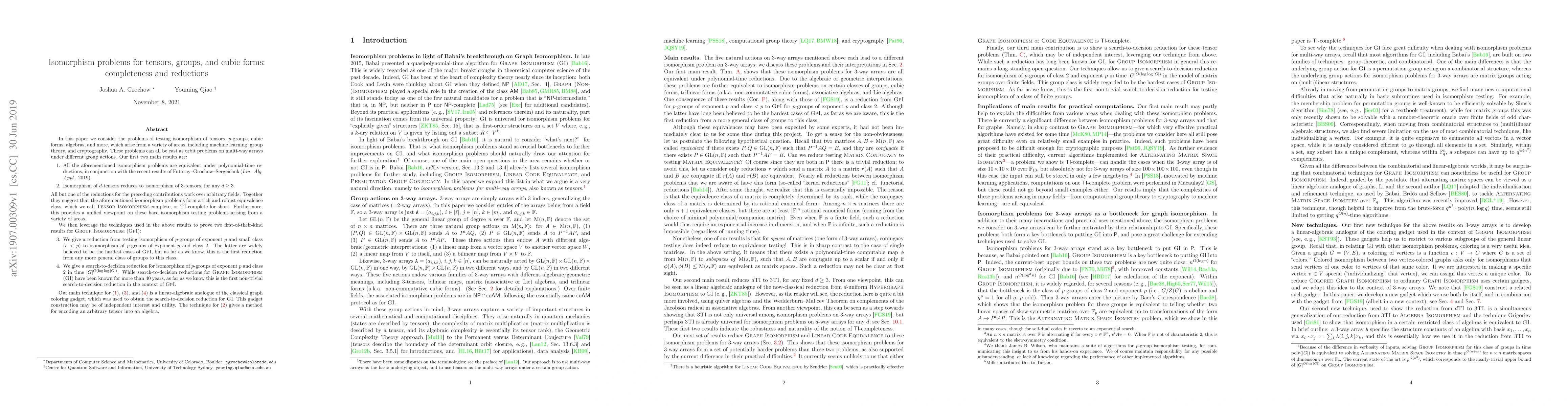 Zhili Chen, Joshua A. Grochow, Youming Qiao et al.