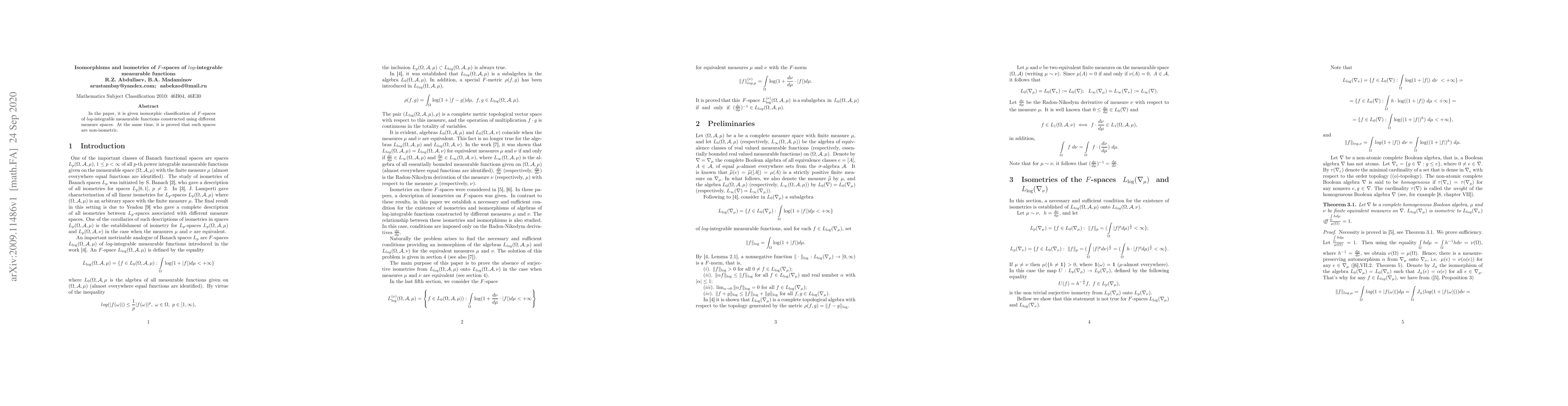 Researchers classify $F$-spaces of log-integrable measurable functions into isomorphic categories but prove they are non-isometric, highlighting the distinction between these related mathematical concepts.