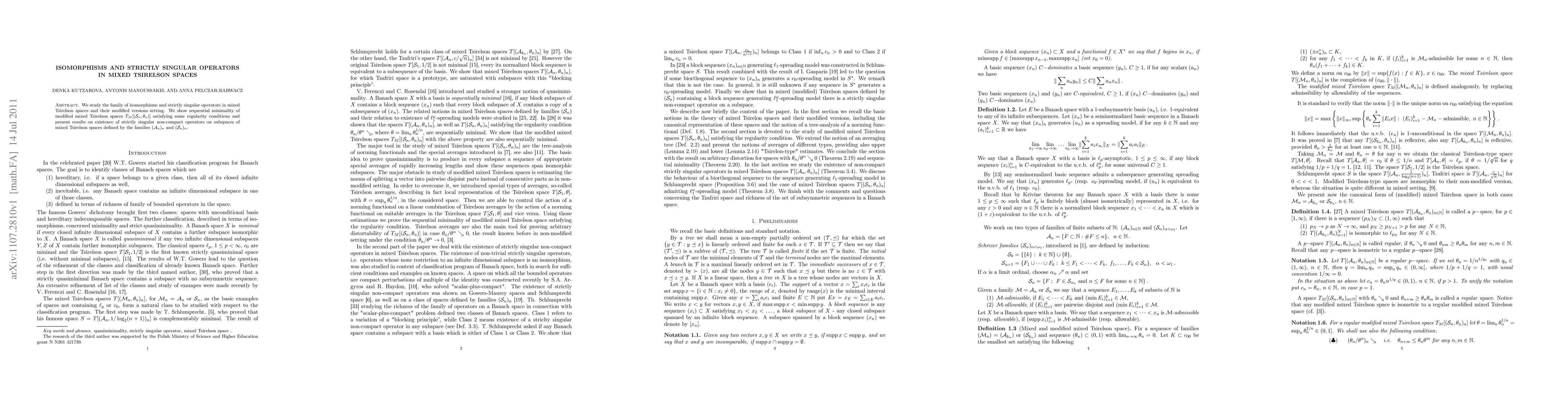 This paper explores isomorphisms and strictly singular operators within mixed Tsirelson spaces, demonstrating the sequential minimality of modified mixed Tsirelson spaces under certain regularity conditions and investigating the existence of strictly singular non-compact operators in subspaces defined by specific families.