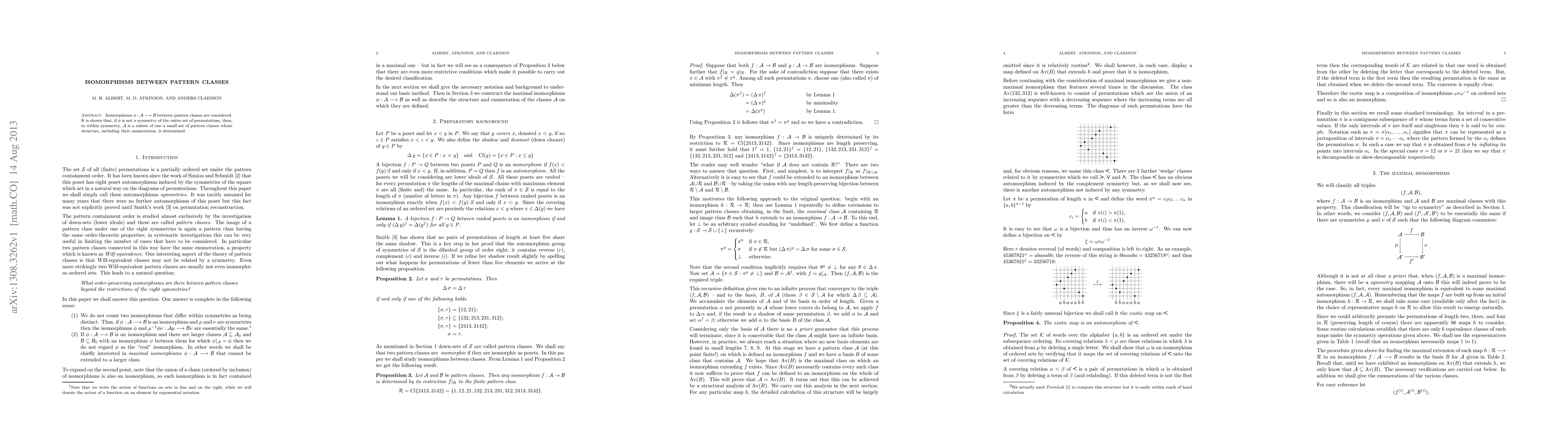 Isomorphisms p between pattern classes A and B are considered. It is shown that, if p is not a symmetry of the entire set of permutations, then, to within symmetry, A is a subset of one a small set of pattern classes whose structure, including their enumeration, is determined.