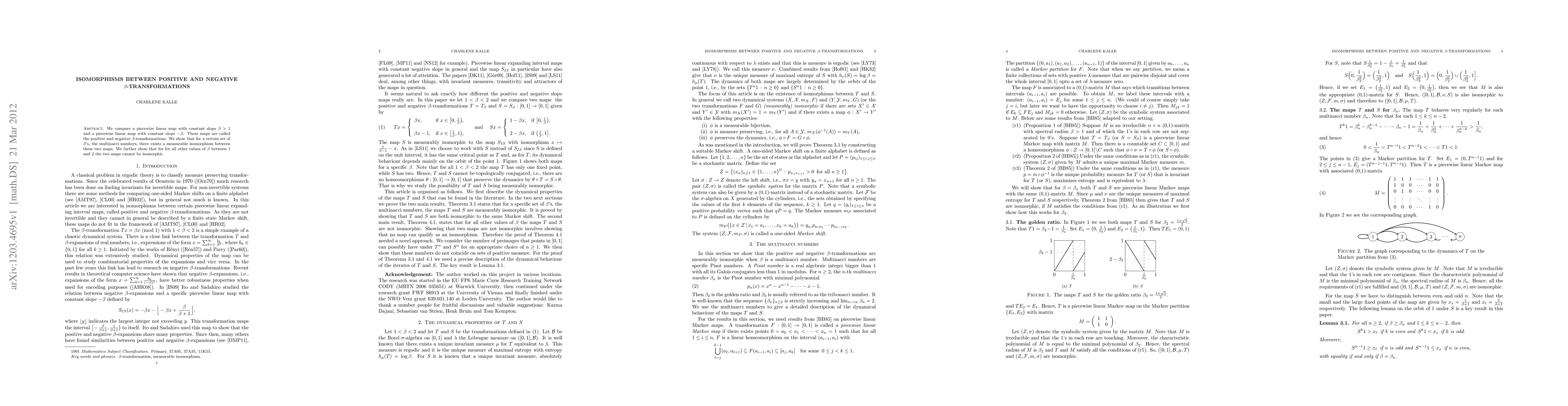 We compare a piecewise linear map with constant slope beta>1 and a piecewise linear map with constant slope -beta. These maps are called the positive and negative beta-transformations. We show that for a certain set of beta's, the multinacci numbers, there exists a measurable isomorphism between these two maps. We further show that for for all other values of beta between 1 and 2 the two maps cannot be isomorphic.
