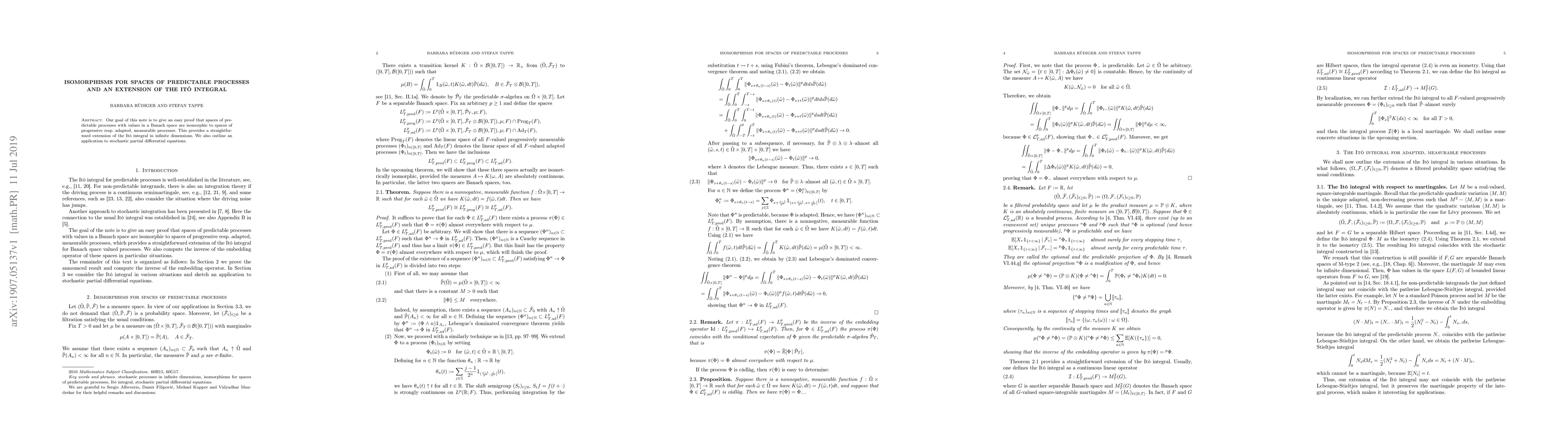 Our goal of this note is to give an easy proof that spaces of predictable processes with values in a Banach space are isomorphic to spaces of progressive resp. adapted, measurable processes. This provides a straightforward extension of the It\^{o} integral in infinite dimensions. We also outline an application to stochastic partial differential equations.
