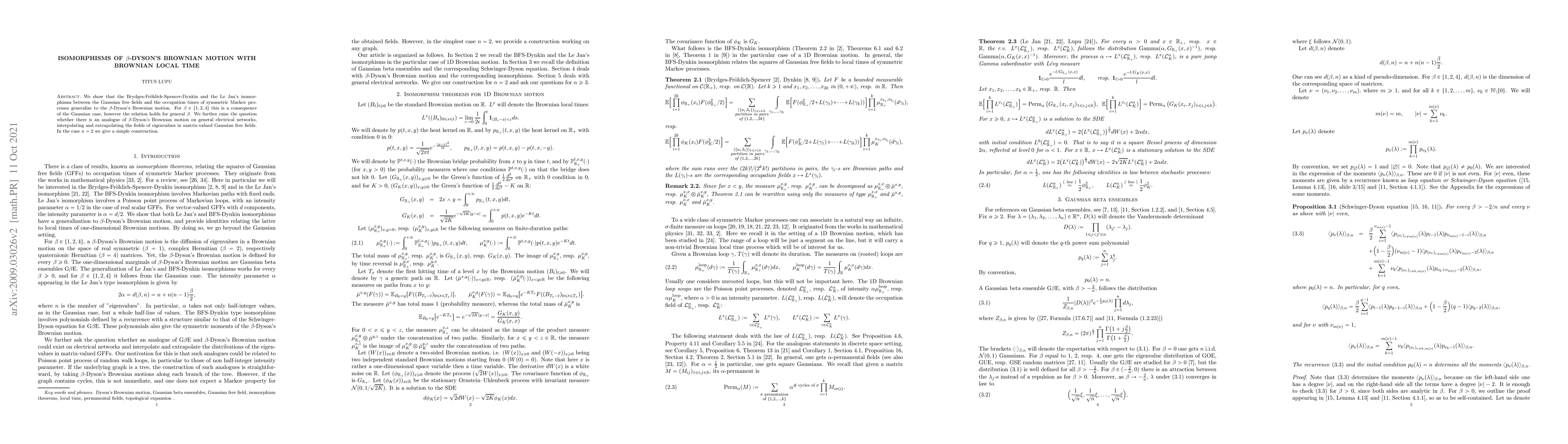 This paper demonstrates the generalization of Brydges-Fröhlich-Spencer-Dynkin and Le Jan's isomorphisms to β-Dyson's Brownian motion, establishing a connection between Gaussian free fields and symmetric Markov processes' occupation times. It also explores potential extensions to electrical networks and provides a construction for the case n=2.