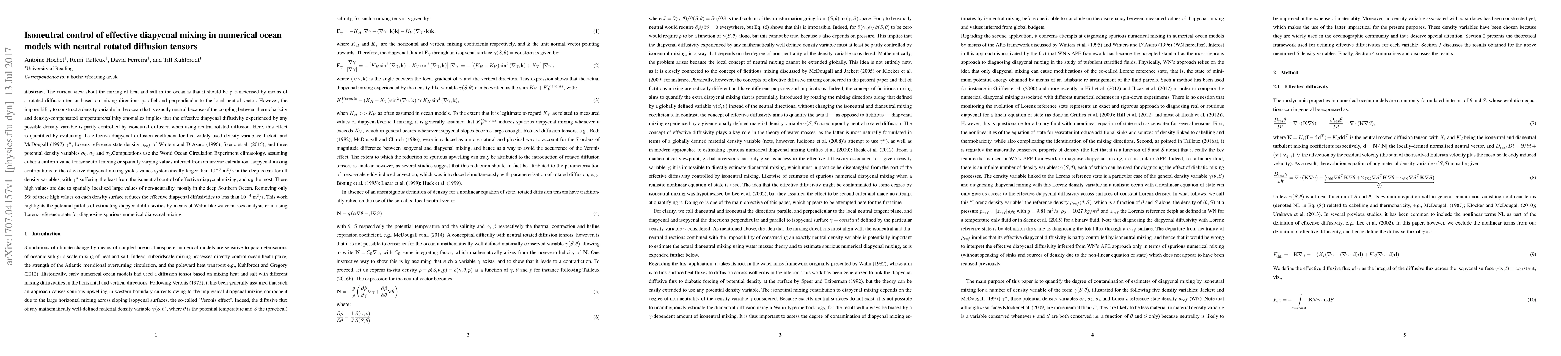 The current view about the mixing of heat and salt in the ocean is that it should be parameterised by means of a rotated diffusion tensor based on mixing directions parallel and perpendicular to the local neutral vector. However, the impossibility to construct a density variable in the ocean that is exactly neutral because of the coupling between thermobaricity and density-compensated temperature/salinity anomalies implies that the effective diapycnal diffusivity experienced by any possible density variable is partly controlled by isoneutral diffusion when using neutral rotated diffusion. Here, this effect is quantified by evaluating the effective diapycnal diffusion coefficient for five widely used density variables: Jackett and McDougall (1997) $\gamma^n$, Lorenz reference state density $\rho_{ref}$ of Winters et al. (1996), Saenz et al. (2015), and three potential density variables $\sigma_0$, $\sigma_2$ and $\sigma_4$.Computations use the World Ocean Circulation Experiment climatology, assuming either a uniform value for isoneutral mixing or spatially varying values inferred from an inverse calculation. Isopycnal mixing contributions to the effective diapycnal mixing yields values systematically larger than $10^{-3}$ $\text{m}^2/\text{s}$ in the deep ocean for all density variables, with $\gamma^n$ suffering the least from the isoneutral control of effective diapycnal mixing, and $\sigma_0$ the most. These high values are due to spatially localised large values of non-neutrality, mostly in the deep Southern Ocean. Removing only 5\% of these high values on each density surface reduces the effective diapycnal diffusivities to less than $10^{-4}$ $\text{m}^2/\text{s}$. This work highlights the potential pitfalls of estimating diapycnal diffusivities by means of Walin-like water masses analysis or in using Lorenz reference state for diagnosing spurious numerical diapycnal mixing.