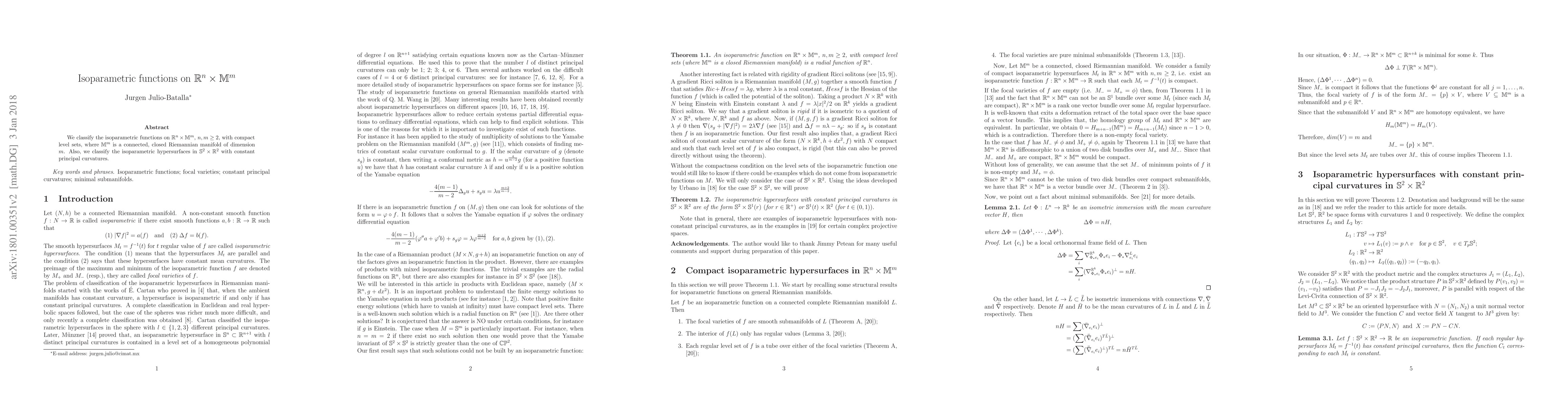 We classify the isoparametric functions on $\mathbb{R}^n\times\mathbb{M}^m$, $n, m\geq2$, with compact level sets, where $\mathbb{M}^m$ is a connected, closed Riemannian manifold of dimension $m$. Also, we classify the isoparametric hypersurfaces in $\mathbb{S}^2\times\mathbb{R}^2$ with constant principal curvatures.