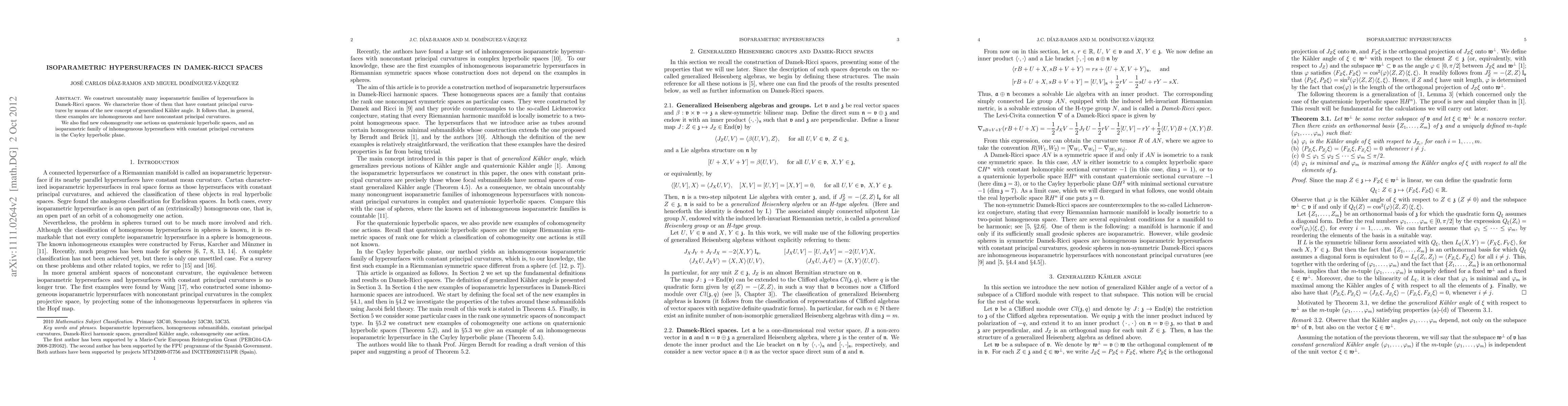 This paper constructs numerous isoparametric hypersurface families in Damek-Ricci spaces and introduces the generalized Kähler angle to characterize those with constant principal curvatures. The study reveals the inhomogeneity and nonconstant principal curvatures of most examples.