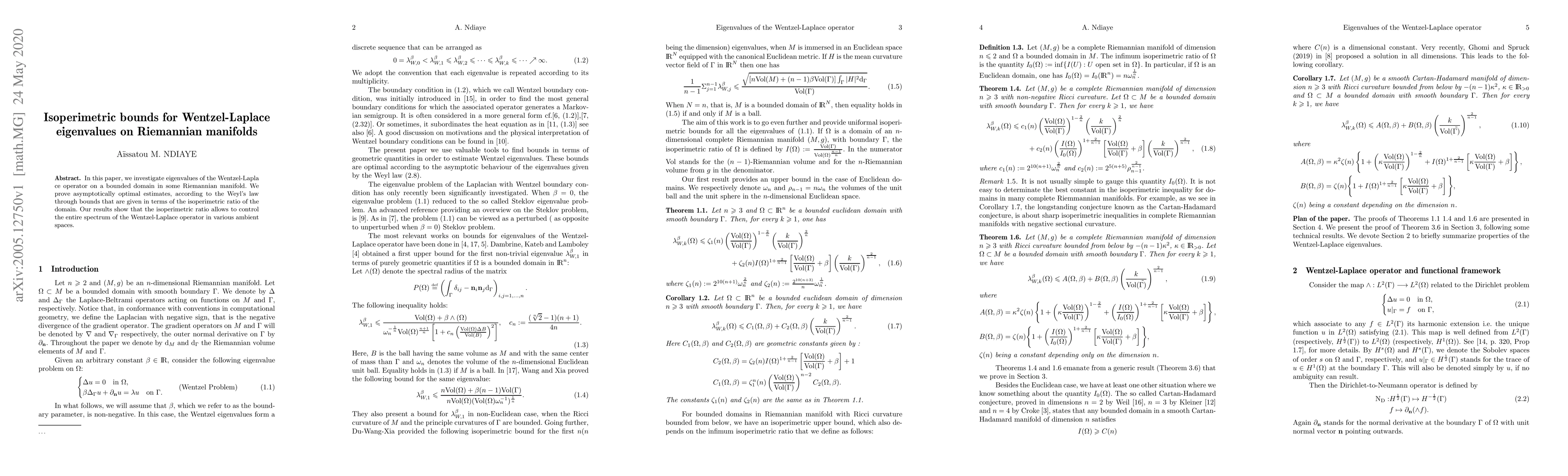 This paper explores eigenvalues of the Wentzel-Laplace operator on Riemannian manifolds, proving asymptotically optimal estimates based on the domain's isoperimetric ratio, which effectively controls the entire spectrum of the operator.