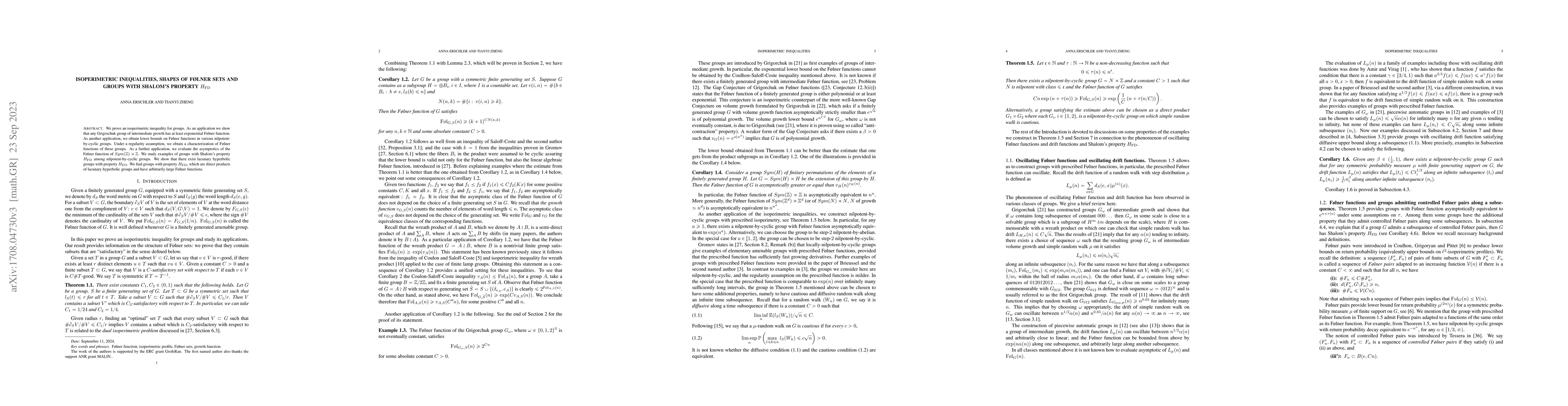 This paper proves an isoperimetric inequality for groups and applies it to derive lower bounds on Følner functions in nilpotent-by-cyclic groups. It also characterizes Følner functions under regularity assumptions and constructs new examples of groups with Shalom's property $H_{\mathrm{FD}}$, including those with large Følner functions.