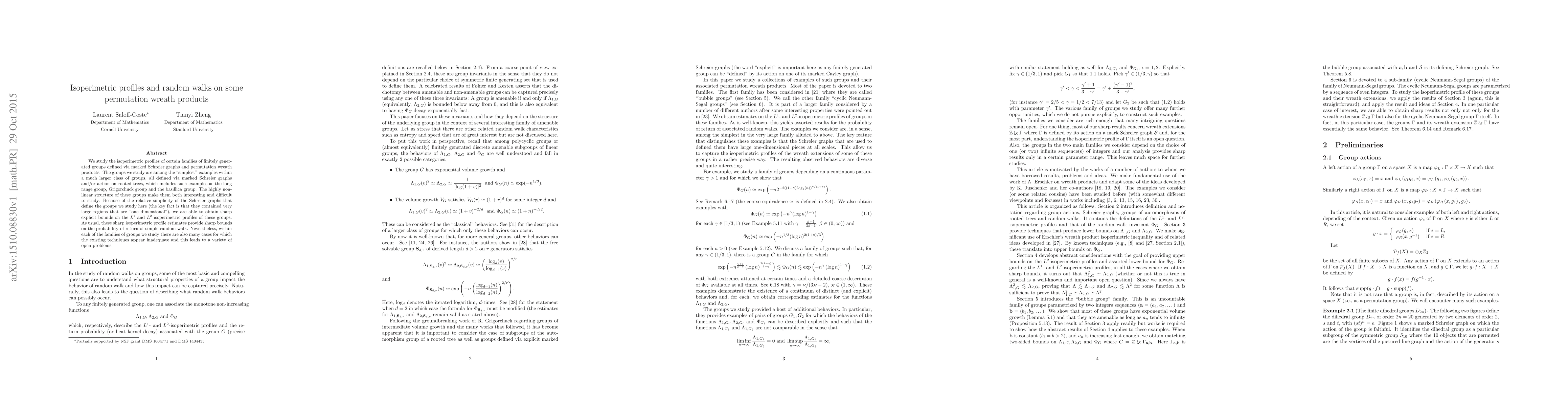 We study the isoperimetric profiles of certain families of finitely generated groups defined via marked Schreier graphs and permutation wreath products. The groups we study are among the "simplest" examples within a much larger class of groups, all defined via marked Schreier graphs and/or action on rooted trees, which includes such examples as the long range group, Grigorchuck group and the basillica group. The highly non-linear structure of these groups make them both interesting and difficult to study. Because of the relative simplicity of the Schreier graphs that define the groups we study here (the key fact is that they contained very large regions that are "one dimensional"), we are able to obtain sharp explicit bounds on the $L^1$ and $L^2$ isoperimetric profiles of these groups. As usual, these sharp isoperimetric profile estimates provide sharp bounds on the probability of return of simple random walk. Nevertheless, within each of the families of groups we study there are also many cases for which the existing techniques appear inadequate and this leads to a variety of open problems.