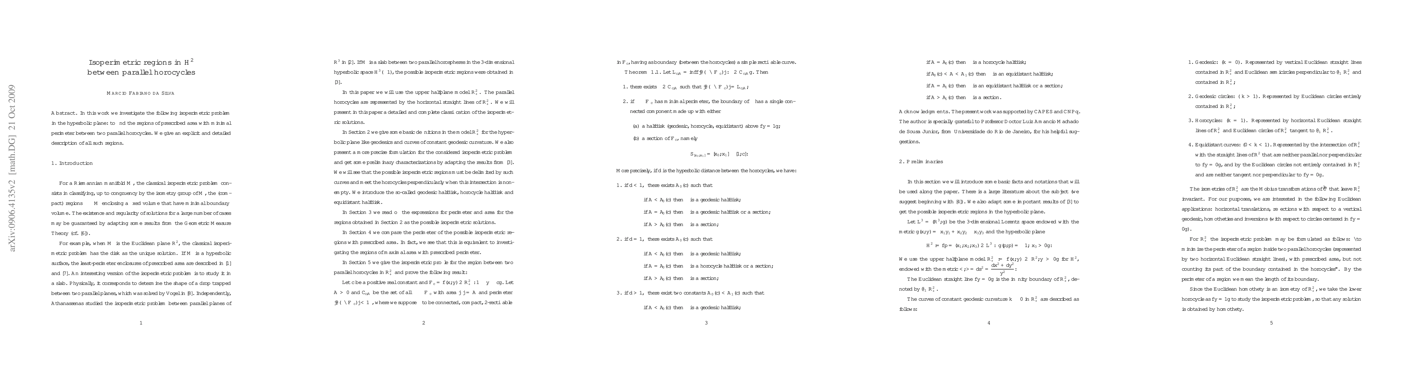 This paper explores the isoperimetric problem in the hyperbolic plane, identifying regions of a given area with minimal perimeter between two parallel horocycles, and provides a comprehensive description of these optimal regions.