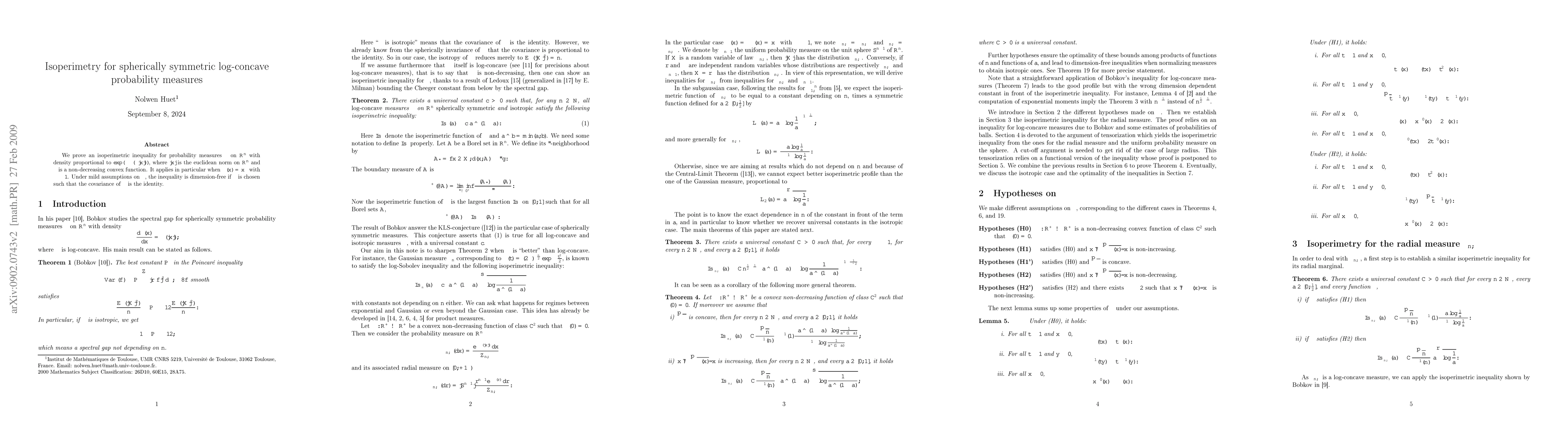 This paper proves an isoperimetric inequality for probability measures with density proportional to a non-decreasing convex function, applying to log-concave distributions in n-dimensional space.