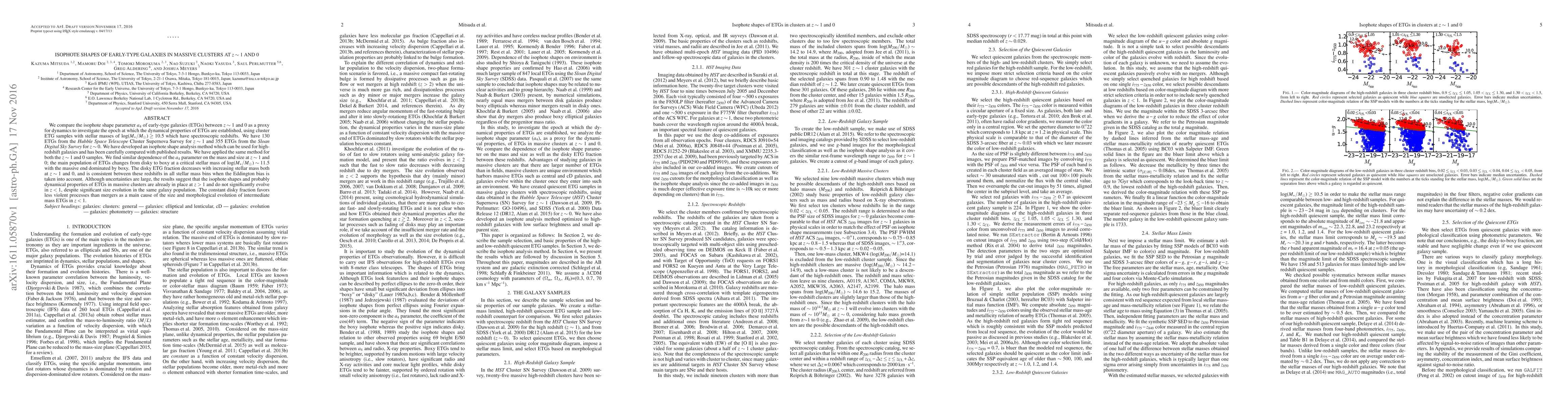 This study compares the isophote shape parameter $a_{4}$ of early-type galaxies (ETGs) at $z\sim1$ and $z\sim0$ to determine when their dynamical properties are established. Results indicate that ETGs' isophote shapes and dynamical properties are largely set by $z>1$ and show little evolution in lower redshifts, despite significant size changes.