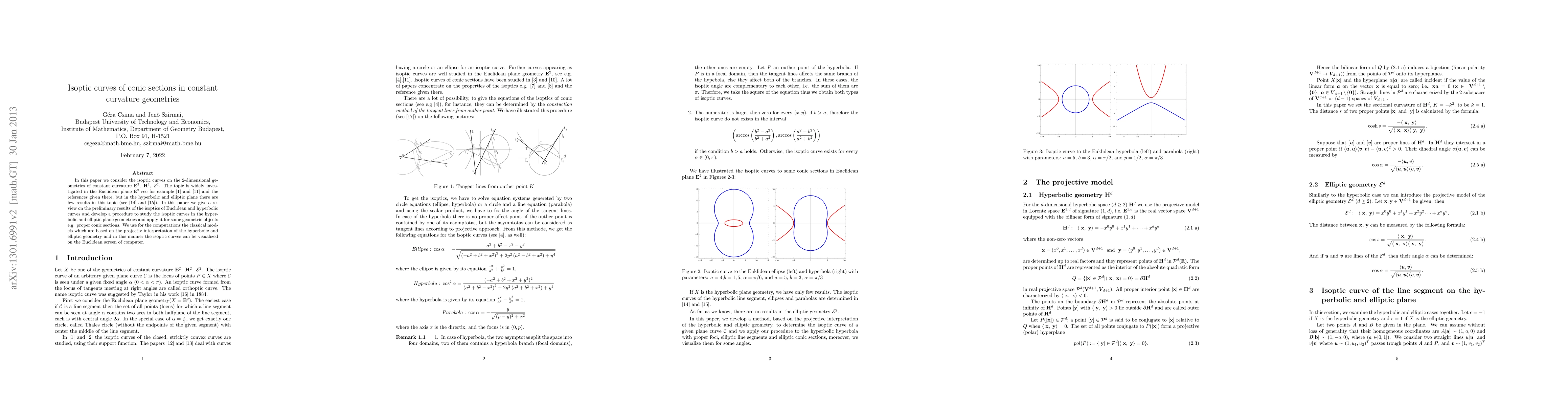 In this paper we consider the isoptic curves on the 2-dimensional geometries of constant curvature $\bE^2,~\bH^2,~\cE^2$. The topic is widely investigated in the Euclidean plane $\bE^2$ see for example \cite{CMM91} and \cite{Wi} and the references given there, but in the hyperbolic and elliptic plane there are few results in this topic (see \cite{CsSz1} and \cite{CsSz2}). In this paper we give a review on the preliminary results of the isoptics of Euclidean and hyperbolic curves and develop a procedure to study the isoptic curves in the hyperbolic and elliptic plane geometries and apply it for some geometric objects e.g. proper conic sections. We use for the computations the classical models which are based on the projectiv interpretation of the hyperbolic and elliptic geometry and in this manner the isoptic curves can be visualized on the Euclidean screen of computer.