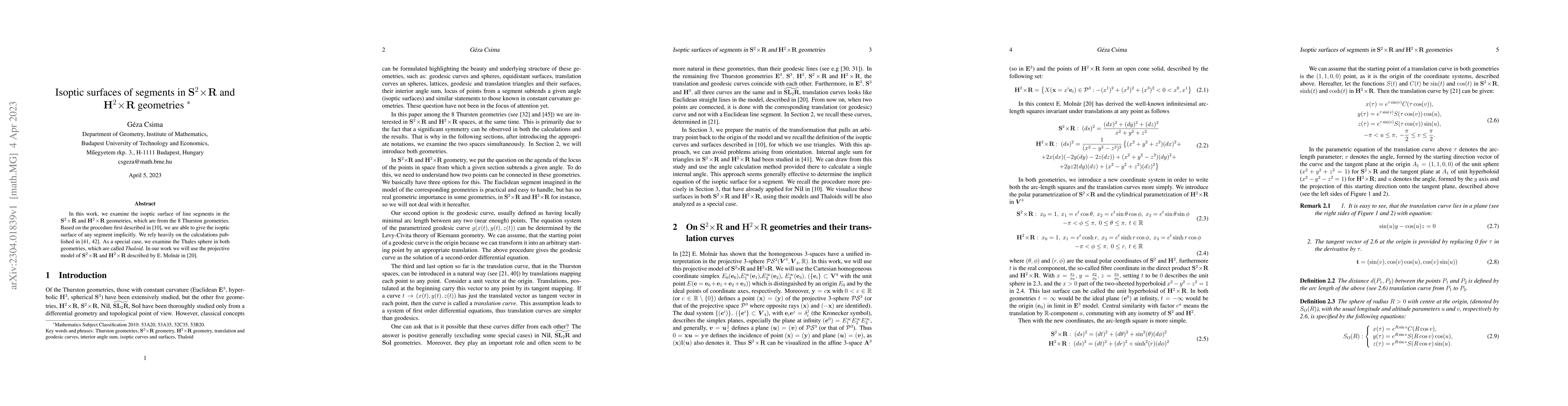 This paper investigates the isoptic surfaces of line segments in $S^2\times R$ and $H^2\times R$ geometries, providing implicit equations for these surfaces based on prior methods. It also explores the Thaloid, a special case of the isoptic surface known as the Thales sphere in these geometries.