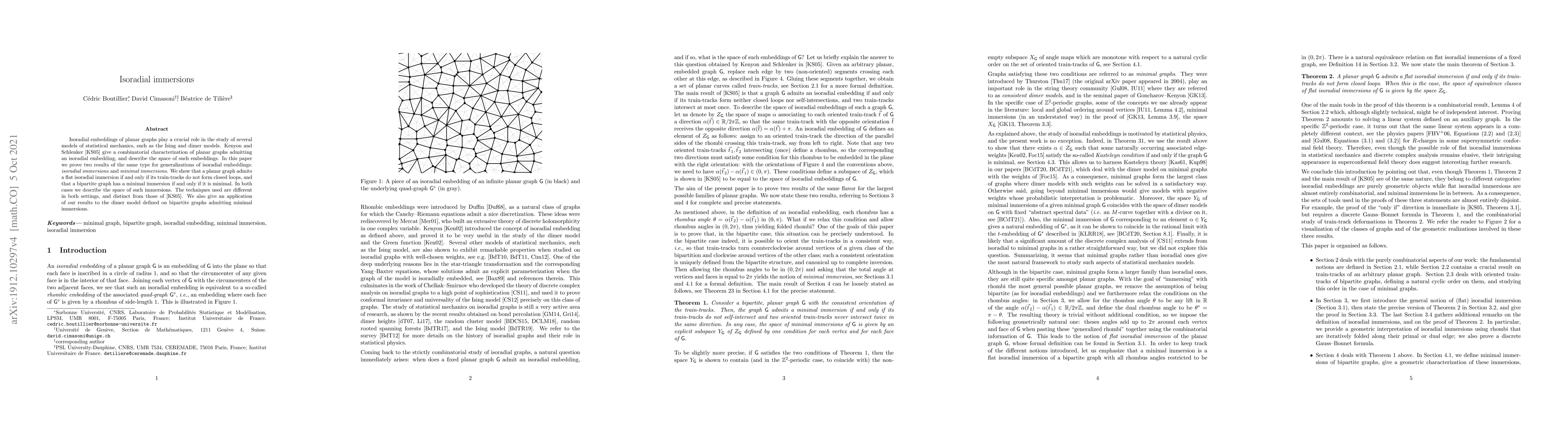 This paper investigates generalizations of isoradial embeddings, proving conditions for planar graphs to admit flat isoradial immersions and minimal immersions. It establishes that non-closed train-tracks characterize the former, while the latter applies only to minimal bipartite graphs, and provides descriptions of the spaces of these immersions.
