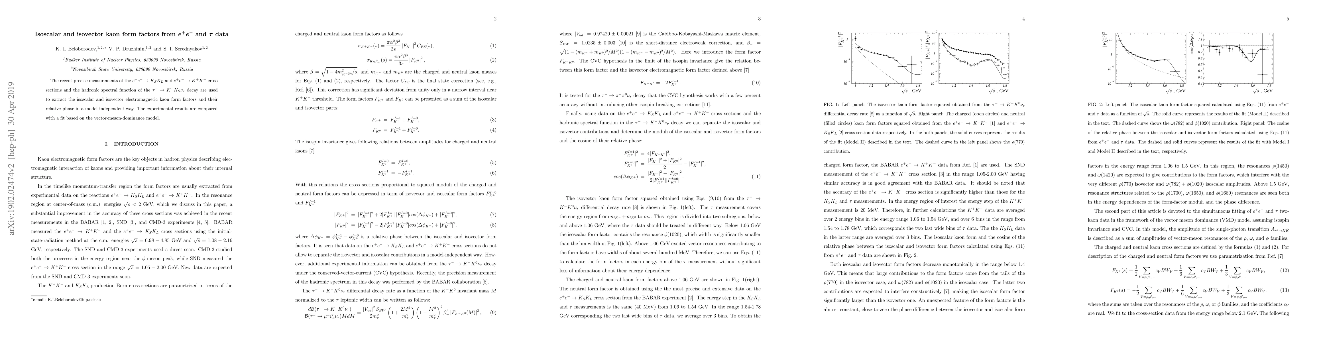This paper extracts isoscalar and isovector kaon form factors from $e^+e^-$ and $\tau$ decay data, employing model-independent methods. It compares these results with a vector-meson-dominance model fit to validate the findings.