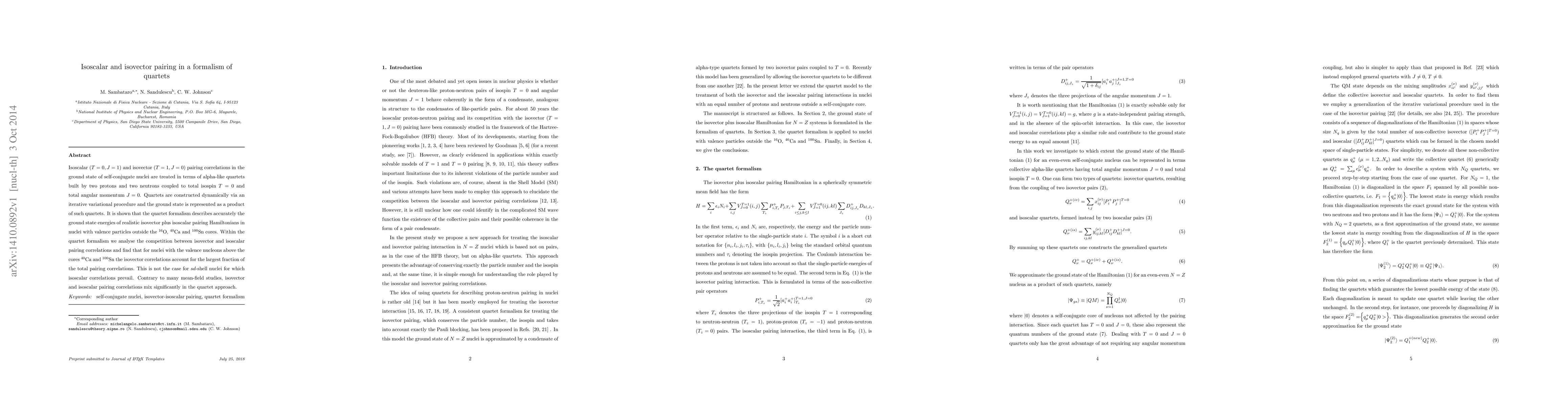 This paper explores the isoscalar and isovector pairing correlations in self-conjugate nuclei using a quartet formalism, showing that it accurately describes ground state energies in nuclei beyond 16O, 40Ca, and 100Sn. It finds that isovector pairing dominates in nuclei with valence nucleons above 40Ca and 100Sn, while isoscalar pairing is more significant in sd-shell nuclei, with significant mixing of pairing correlations in the quartet approach.