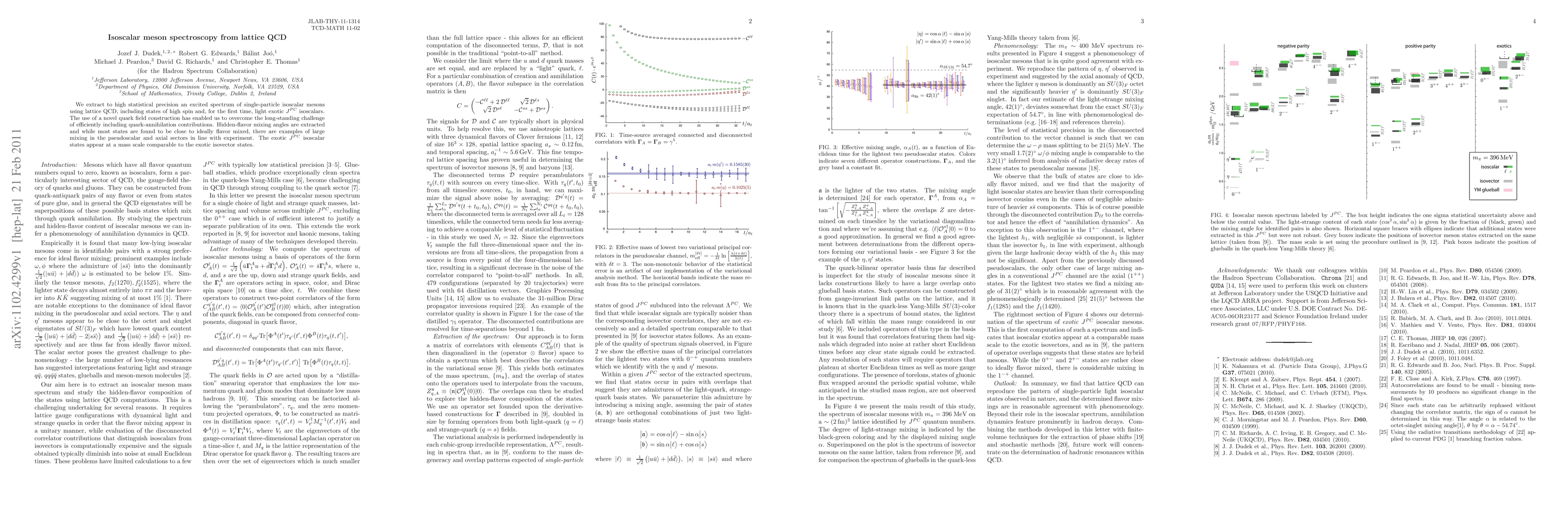 We extract to high statistical precision an excited spectrum of single-particle isoscalar mesons using lattice QCD, including states of high spin and, for the first time, light exotic JPC isoscalars. The use of a novel quark field construction has enabled us to overcome the long-standing challenge of efficiently including quark-annihilation contributions. Hidden-flavor mixing angles are extracted and while most states are found to be close to ideally flavor mixed, there are examples of large mixing in the pseudoscalar and axial sectors in line with experiment. The exotic JPC isoscalar states appear at a mass scale comparable to the exotic isovector states.