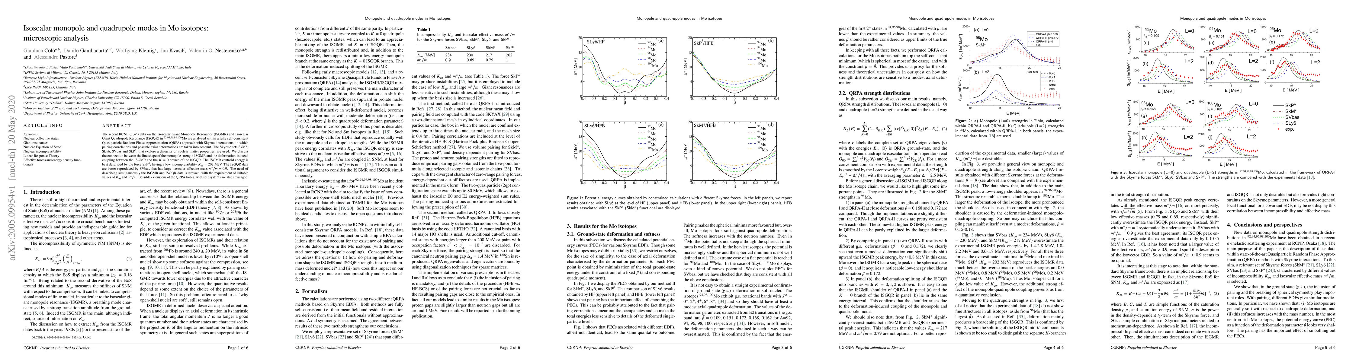 This paper analyzes recent RCNP $(\alpha, \alpha')$ data on the Isoscalar Giant Monopole and Quadrupole Resonances in Mo isotopes using a self-consistent QRPA approach. The study highlights the importance of suitable nuclear matter properties, such as low incompressibility and effective mass, to accurately describe both ISGMR and ISGQR data.