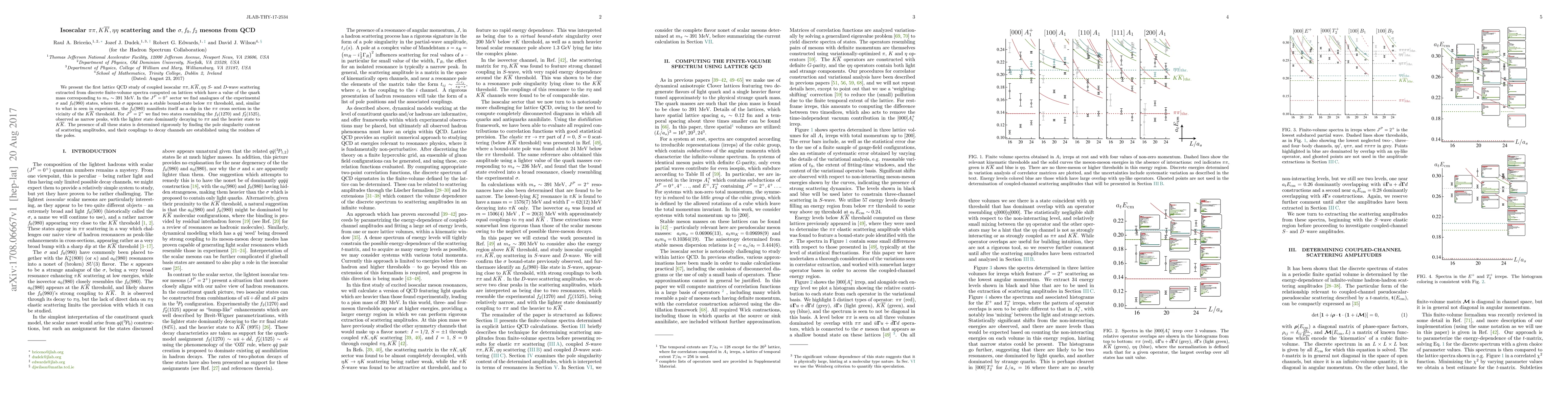 We present the first lattice QCD study of coupled isoscalar $\pi\pi,K\overline{K},\eta\eta$ $S$- and $D$-wave scattering extracted from discrete finite-volume spectra computed on lattices which have a value of the quark mass corresponding to $m_\pi\sim391$ MeV. In the $J^P=0^+$ sector we find analogues of the experimental $\sigma$ and $f_0(980)$ states, where the $\sigma$ appears as a stable bound-state below $\pi\pi$ threshold, and, similar to what is seen in experiment, the $f_0(980)$ manifests itself as a dip in the $\pi\pi$ cross section in the vicinity of the $K\overline{K}$ threshold. For $J^P=2^+$ we find two states resembling the $f_2(1270)$ and $f_2'(1525)$, observed as narrow peaks, with the lighter state dominantly decaying to $\pi\pi$ and the heavier state to $K\overline{K}$. The presence of all these states is determined rigorously by finding the pole singularity content of scattering amplitudes, and their couplings to decay channels are established using the residues of the poles.