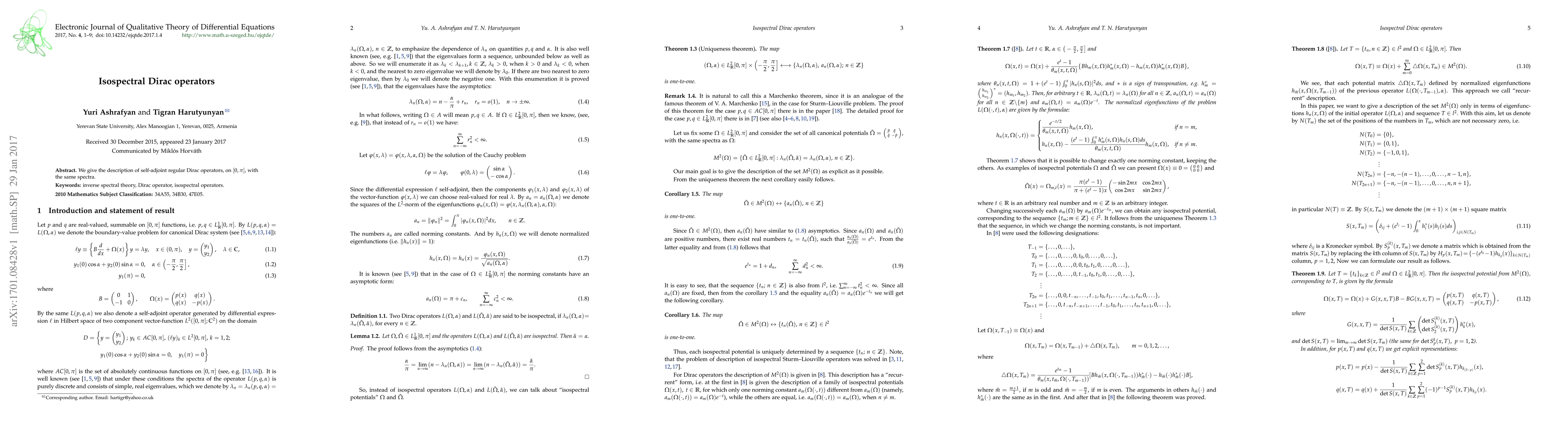 We give the description of self-adjoint regular Dirac operators, on $[0, \pi]$, with the same spectra.