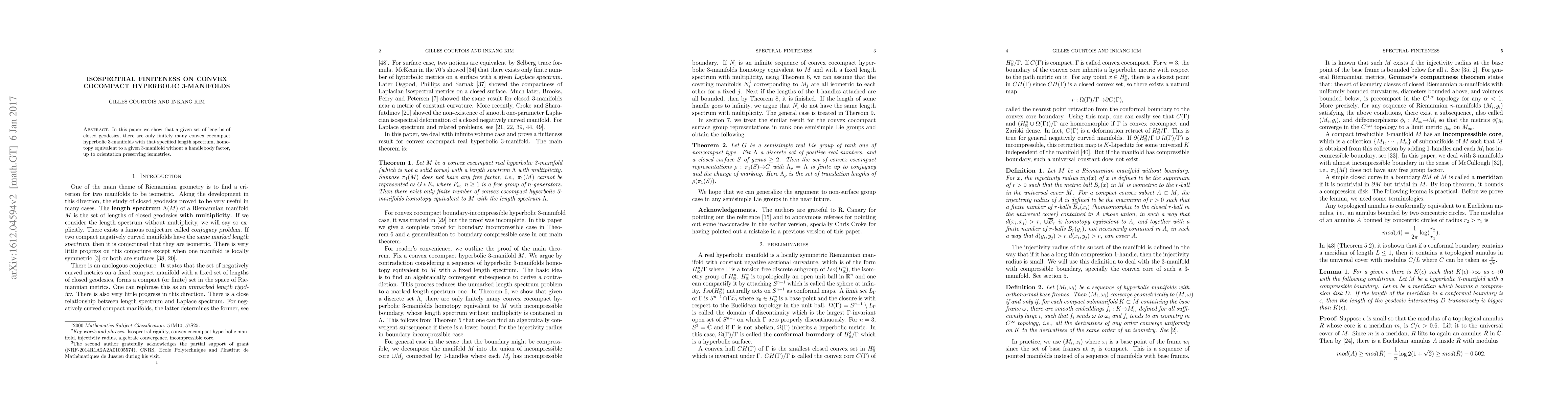 In this paper we show that a given set of lengths of closed geodesics, there are only finitely many convex cocompact hyperbolic 3-manifolds with that specified length spectrum, homotopy equivalent to a given 3-manifold without a handlebody factor, up to orientation preserving isometries.