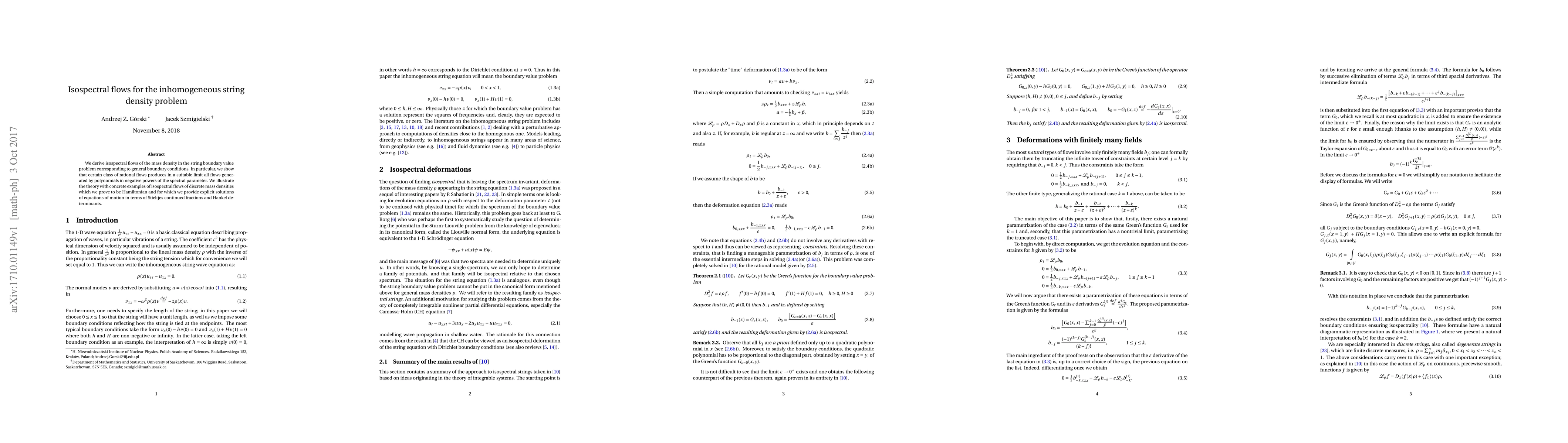 The paper presents a novel approach to deriving isospectral flows for inhomogeneous string density problems, establishing a connection between rational flows and polynomial flows in negative powers of the spectral parameter, and providing explicit Hamiltonian solutions for discrete mass densities using Stieltjes continued fractions and Hankel determinants.