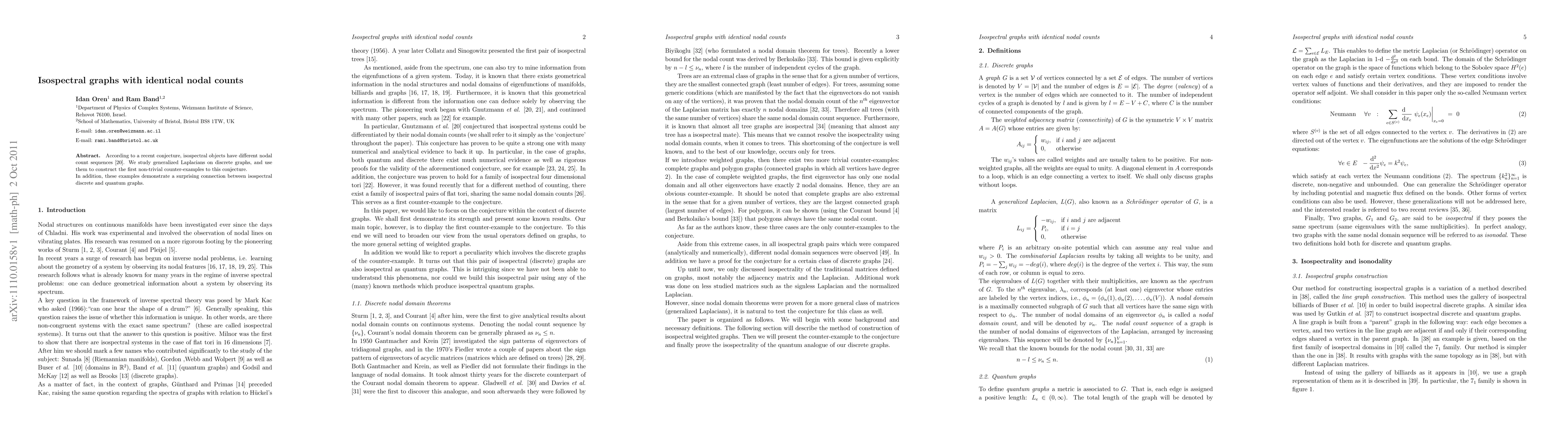 This paper constructs non-trivial counter-examples to the conjecture that isospectral objects must have different nodal count sequences, using generalized Laplacians on discrete graphs. It also reveals an unexpected link between isospectral discrete and quantum graphs.