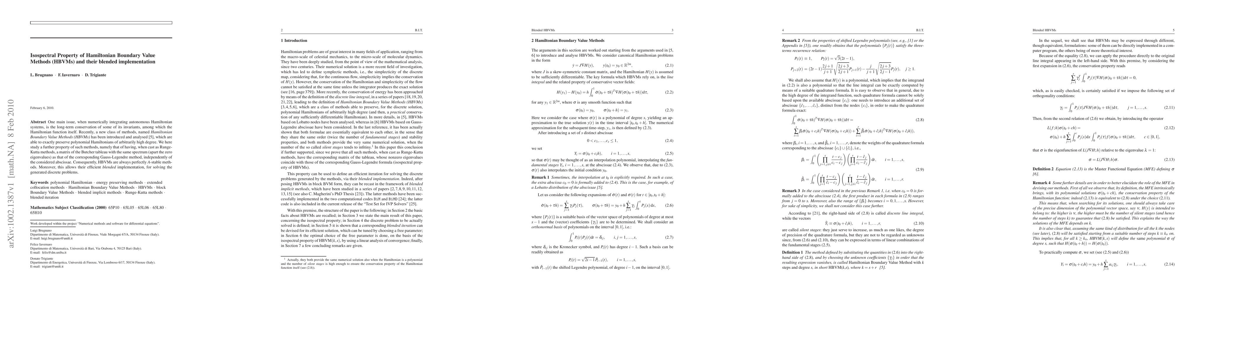 One main issue, when numerically integrating autonomous Hamiltonian systems, is the long-term conservation of some of its invariants, among which the Hamiltonian function itself. Recently, a new class of methods, named "Hamiltonian Boundary Value Methods (HBVMs)" has been introduced and analysed, which are able to exactly preserve polynomial Hamiltonians of arbitrarily high degree. We here study a further property of such methods, namely that of having, when cast as Runge-Kutta methods, a matrix of the Butcher tableau with the same spectrum (apart the zero eigenvalues) as that of the corresponding Gauss-Legendre method, independently of the considered abscissae. Consequently, HBVMs are always perfectly A-stable methods. Moreover, this allows their efficient "blended" implementation, for solving the generated discrete problems.