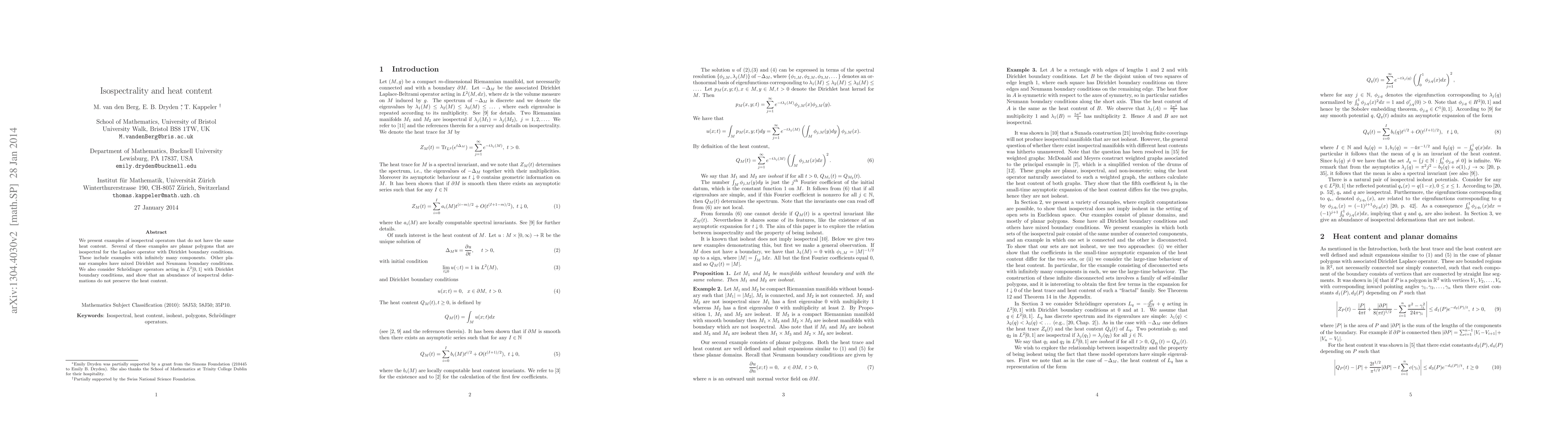 This paper explores isospectral operators that share the same spectrum but differ in heat content, presenting examples of planar polygons and Schrödinger operators where isospectrality does not imply equal heat content, even under various boundary conditions.