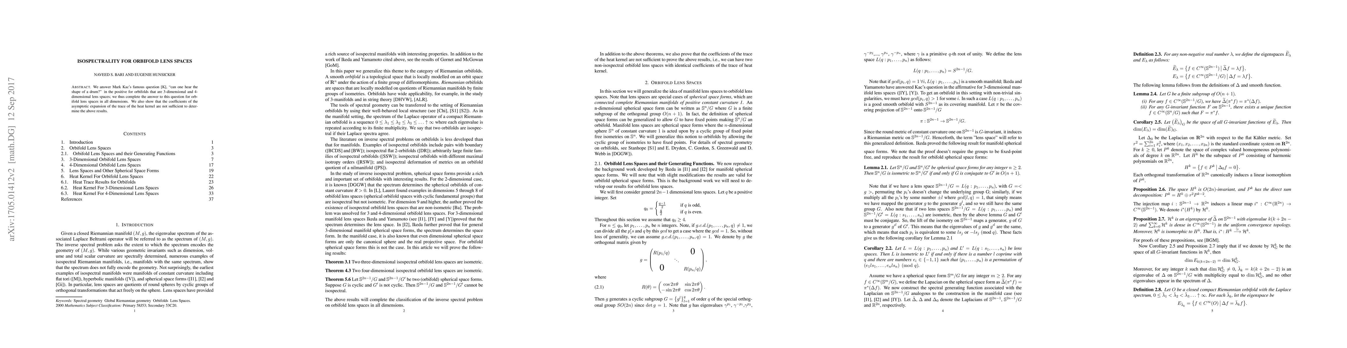 We answer Mark Kac's famous question, "can one hear the shape of a drum?" in the positive for orbifolds that are 3-dimensional and 4-dimensional lens spaces; we thus complete the answer to this question for orbifold lens spaces in all dimensions. We also show that the coefficients of the asymptotic expansion of the trace of the heat kernel are not sufficient to determine the above results.