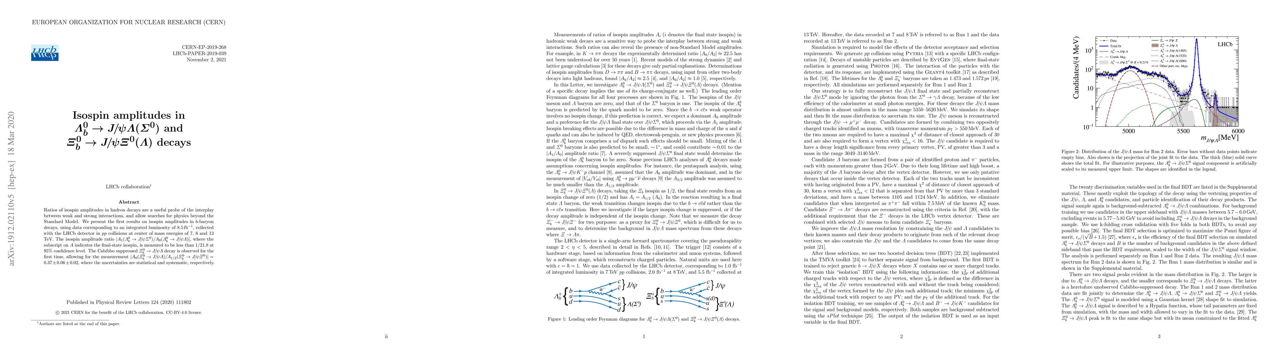 Ratios of isospin amplitudes in hadron decays are a useful probe of the interplay between weak and strong interactions, and allow searches for physics beyond the Standard Model. We present the first results on isospin amplitudes in $b$-baryon decays, using data corresponding to an integrated luminosity of 8.5 fb$^{-1}$, collected with the LHCb detector in $pp$ collisions at center of mass energies of 7, 8 and 13 TeV. The isospin amplitude ratio $|A_1(\Lambda_b^0\to J/\psi \Sigma^0)/A_0(\Lambda_b^0\to J/\psi\Lambda)|$, where the subscript on $A$ indicates the final-state isospin, is measured to be less than 1/21.8 at 95\% confidence level. The Cabibbo suppressed $\Xi_b^0\to J/\psi\Lambda$ decay is observed for the first time, allowing for the measurement $|A_0(\Xi_b^0\to J/\psi\Lambda)/A_{1/2}(\Xi_b^0\to J/\psi\Xi^0)| =0.37 \pm 0.06\pm 0.02$, where the uncertainties are statistical and systematic, respectively.